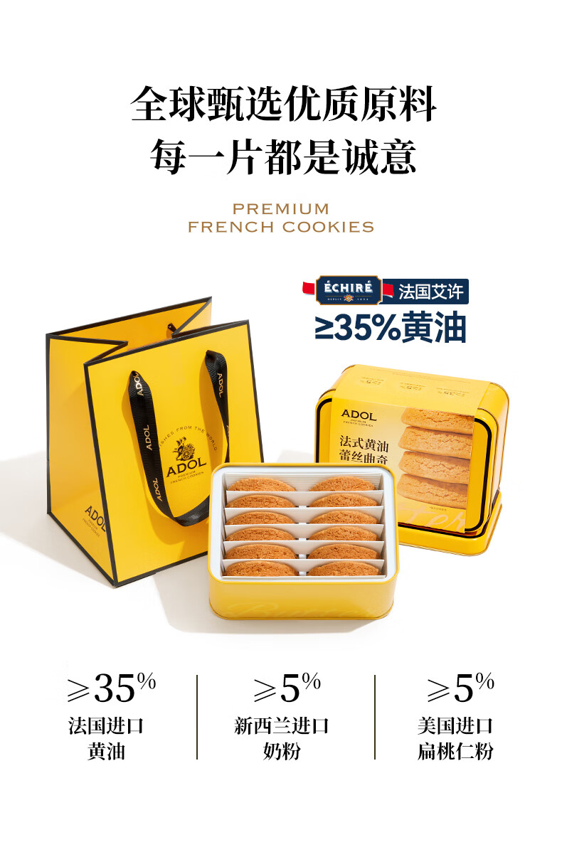 ADOL艾许黄油蕾丝曲奇饼干礼盒零食糕点伴手礼铁盒装2盒源头直发