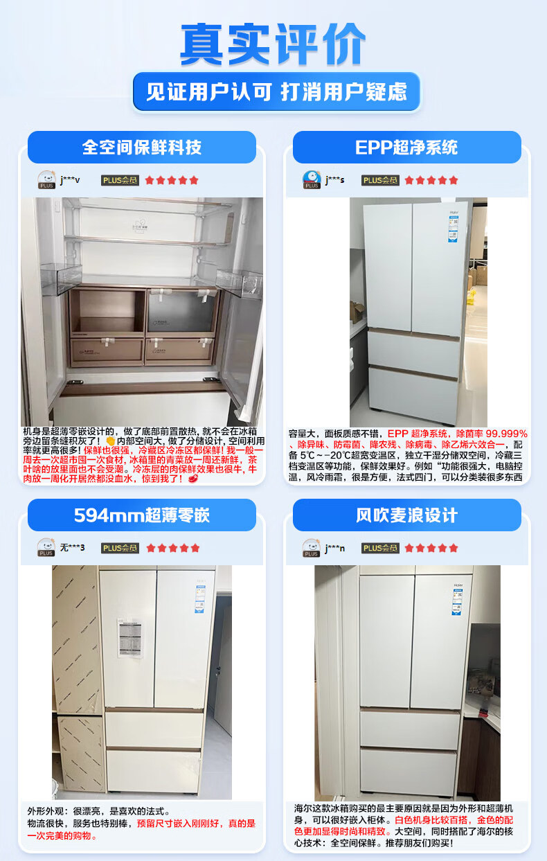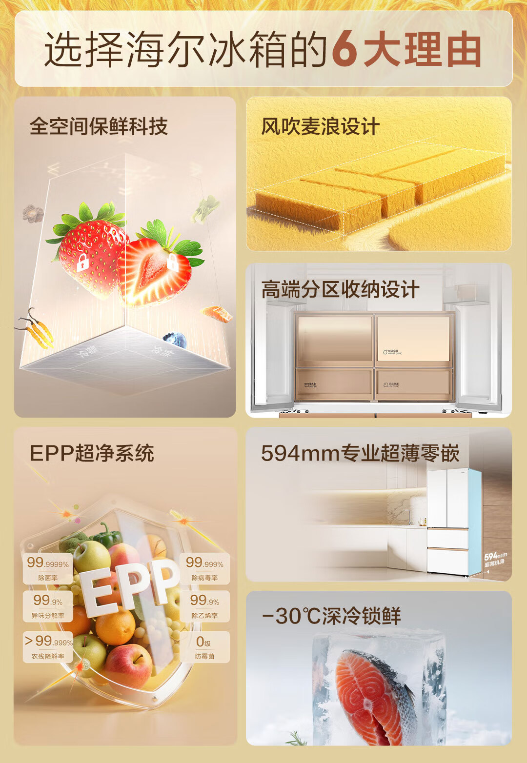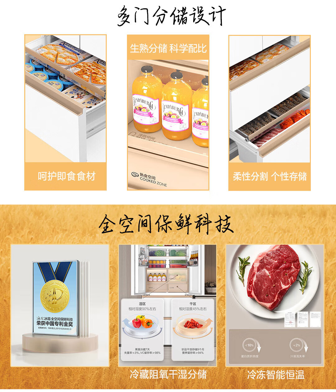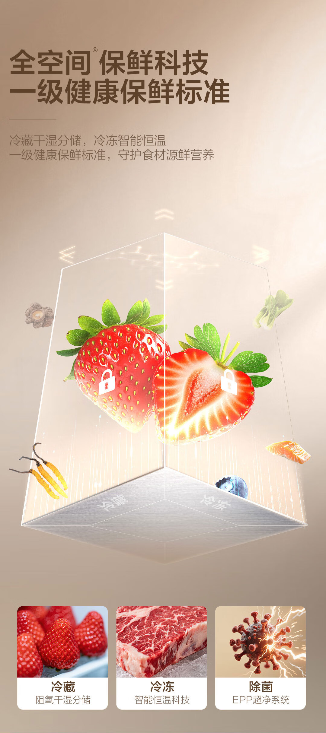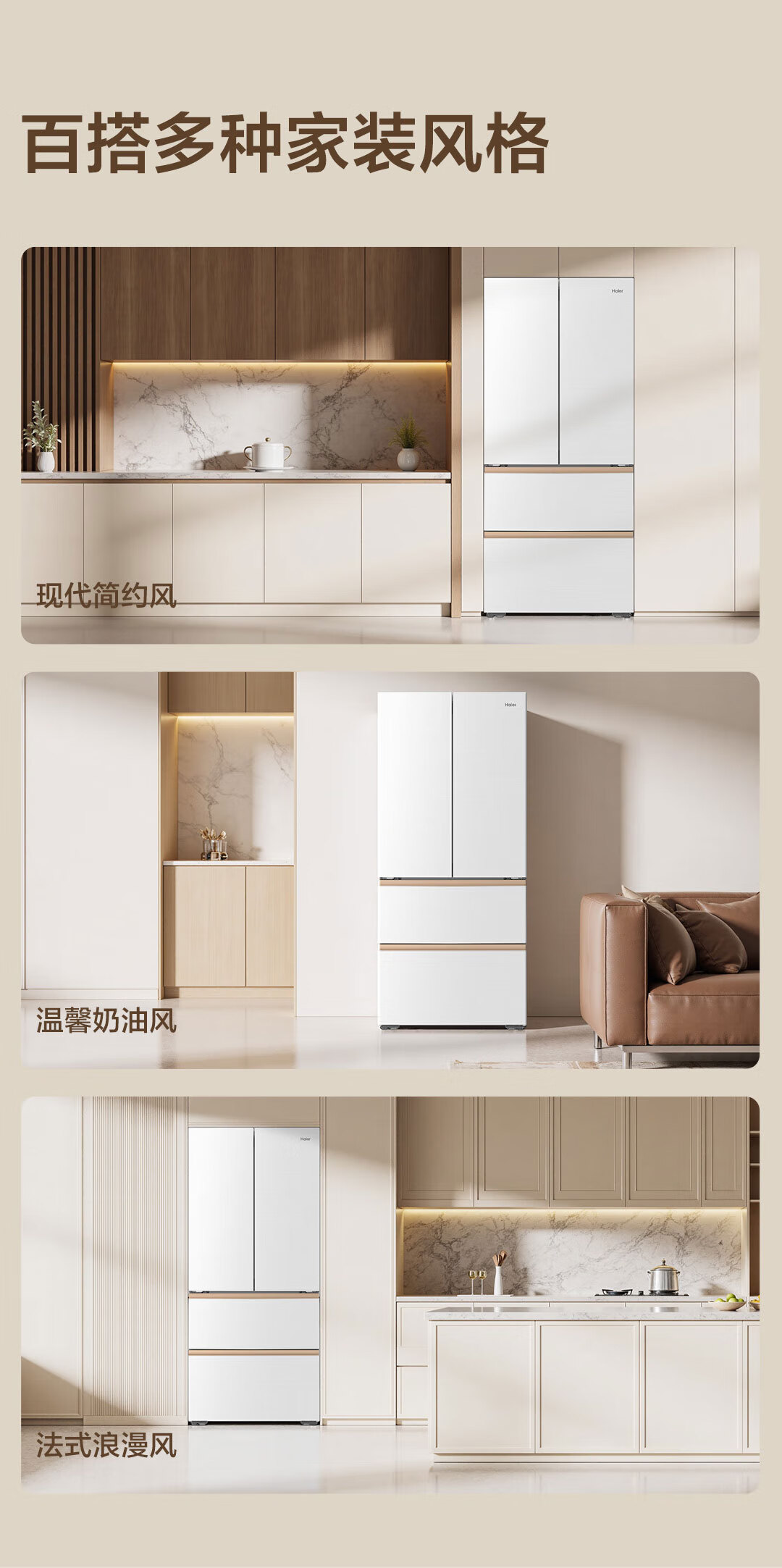 海尔511升麦浪全空间保鲜594mm专业超薄零嵌多门家用电冰箱一级能效国家补贴20%