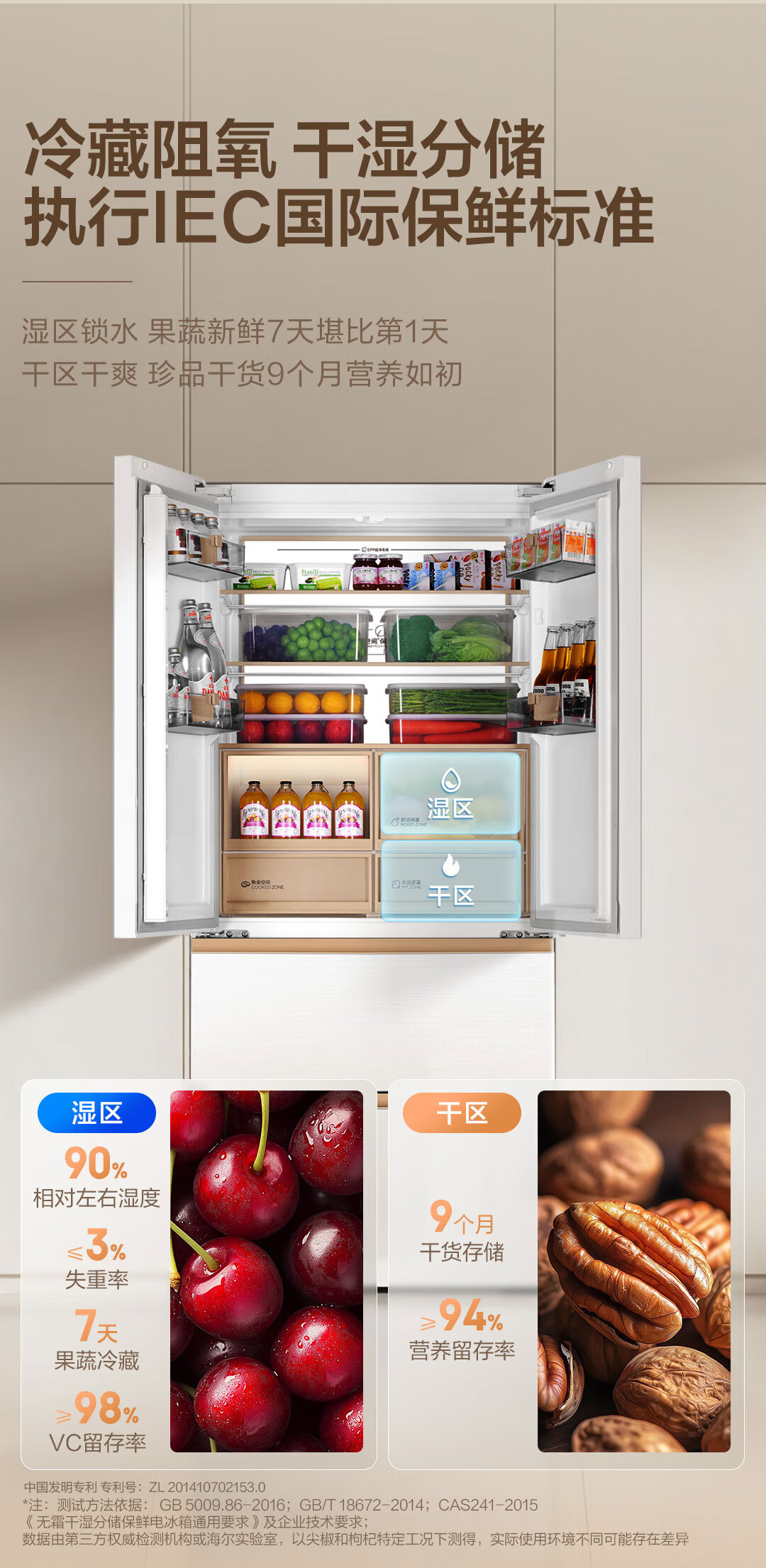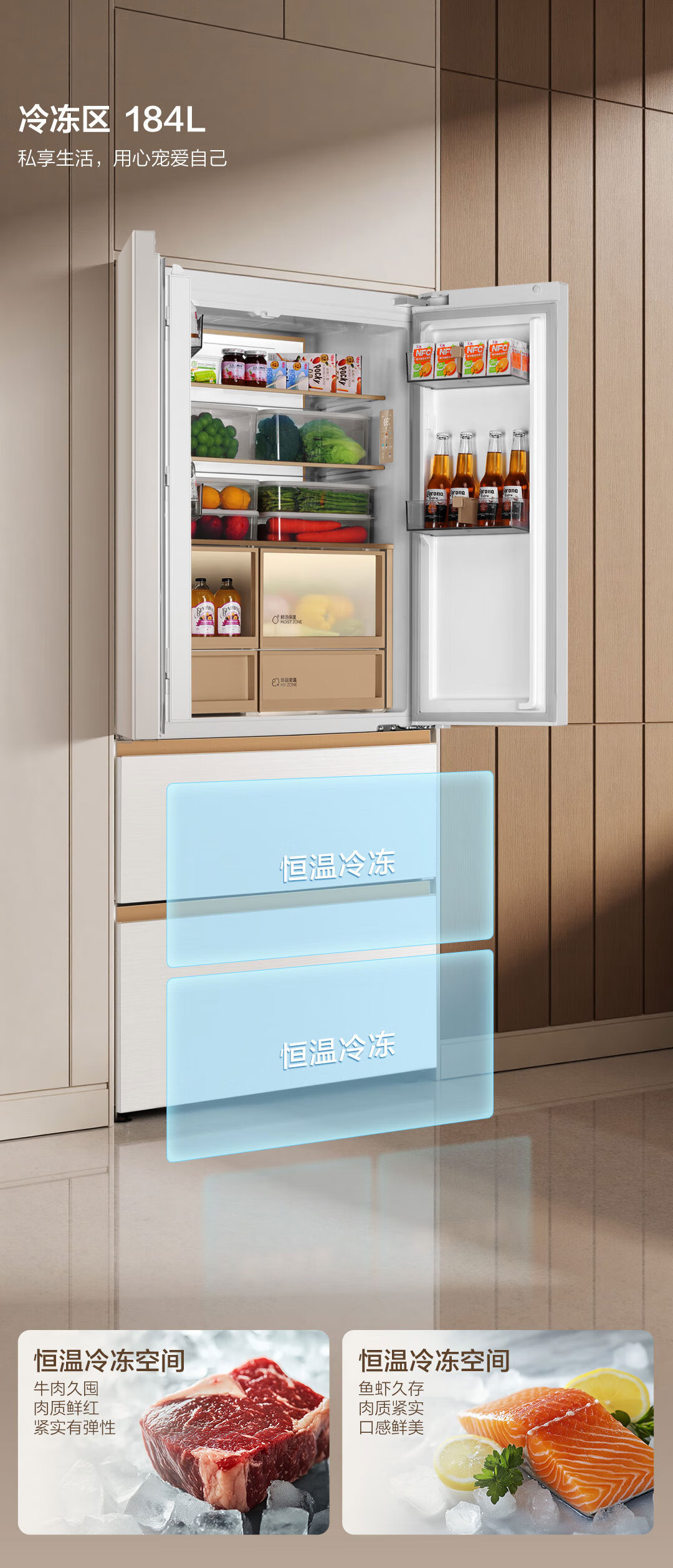 美菱(MeiLing)小确杏502升法式四开门冰箱70cm宽制冰超薄嵌入大容量变频底部散热国家补贴BCD-502WFP9CZX杏悦白