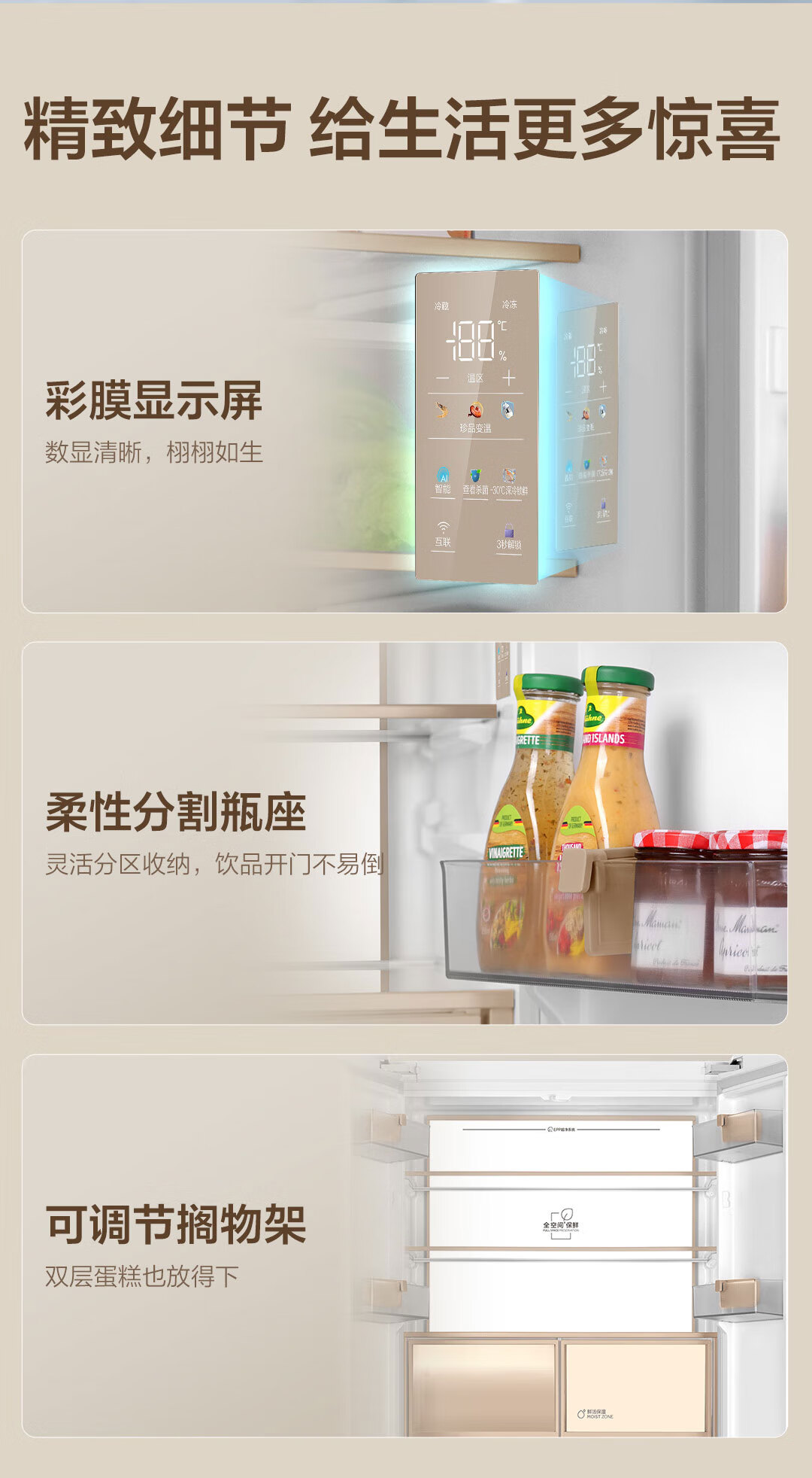 新飞 (Frestec)450L超薄嵌入对开门冰箱主动除菌一级平嵌 支持鸿蒙智联风冷无霜国家补贴BCD-450WKQ9AT素雪白