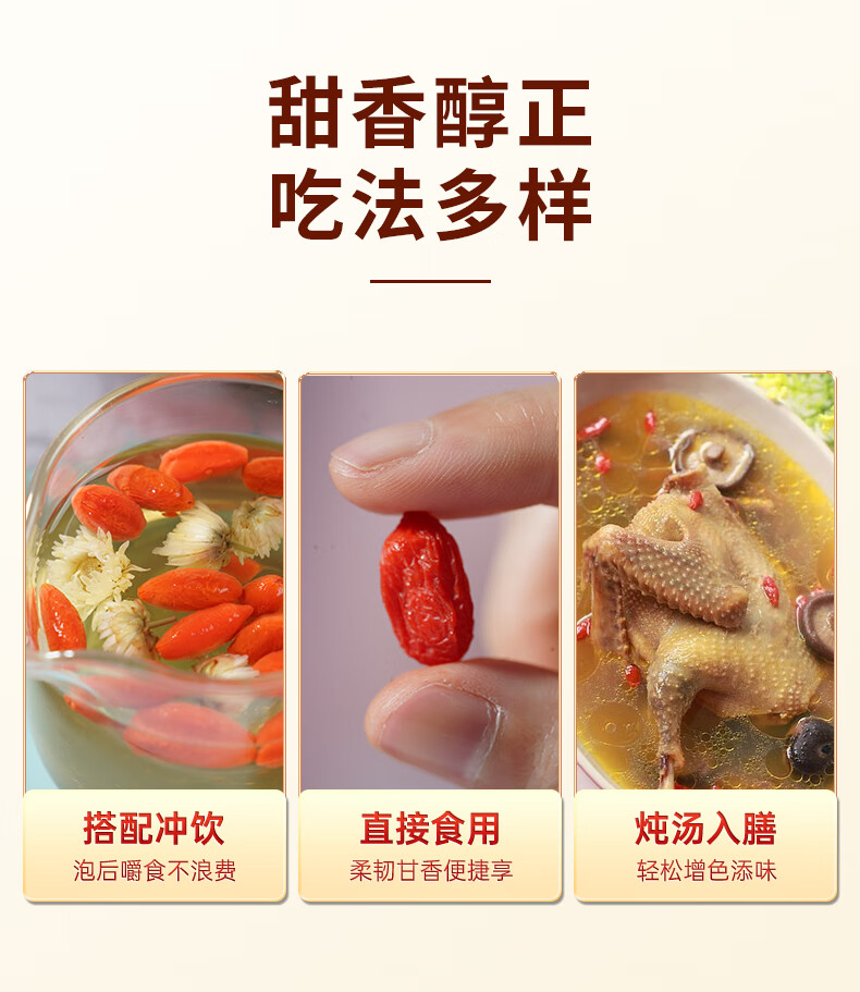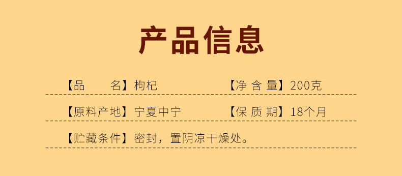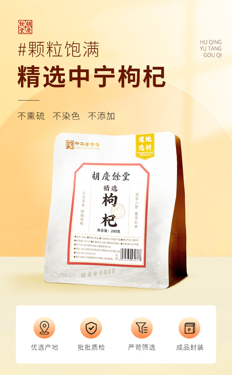 胡庆余堂精选枸杞200克袋装宁夏中宁红枸杞泡茶煮水男性养生茶无硫泡酒
