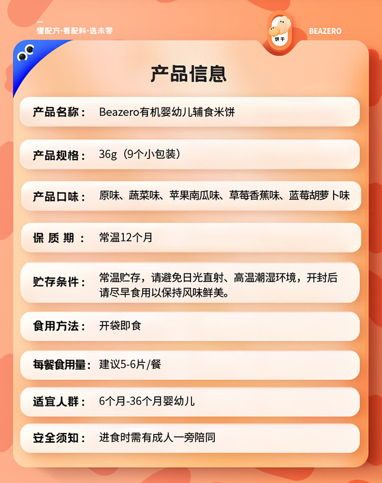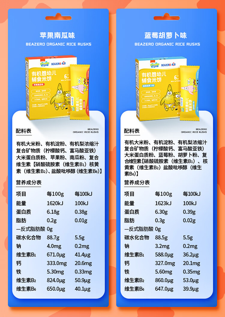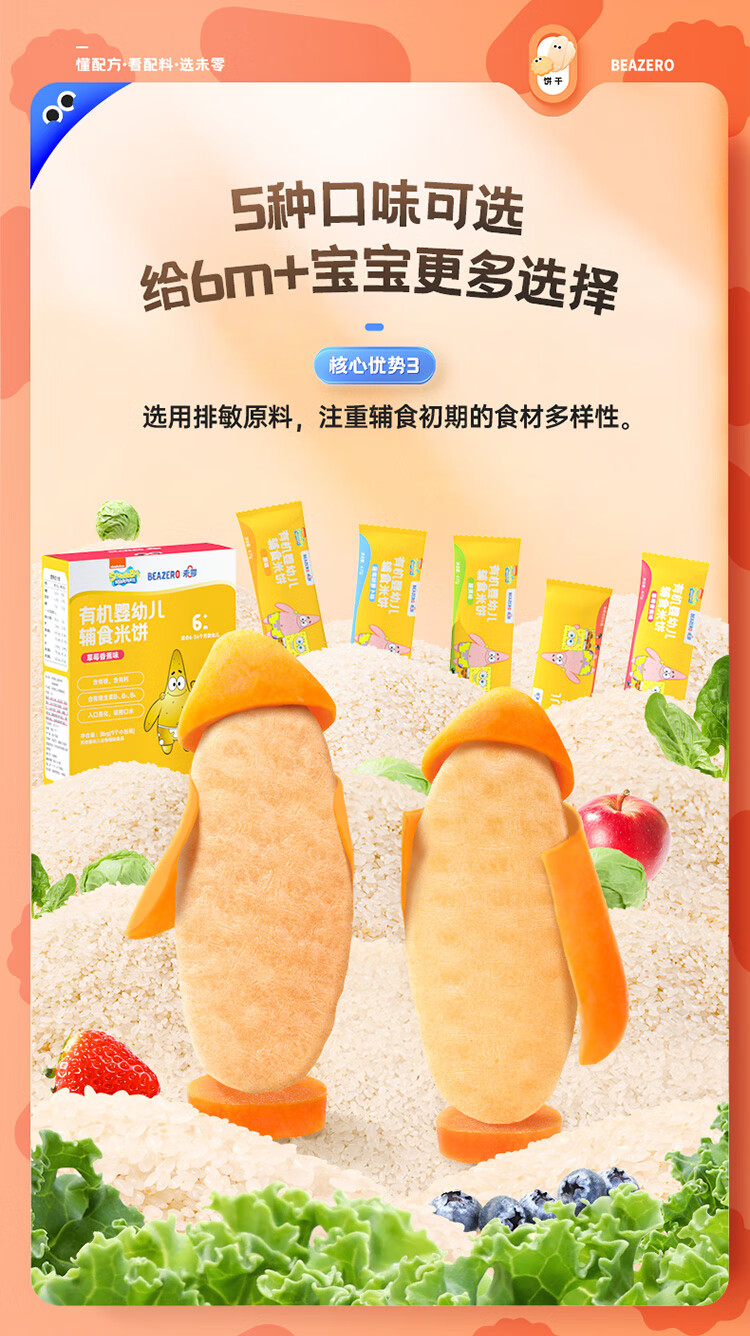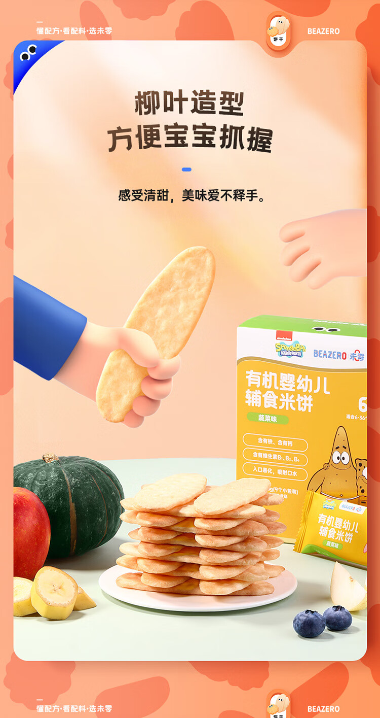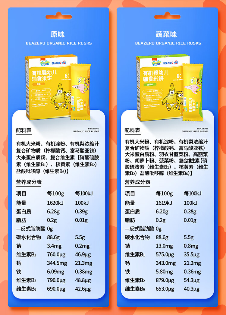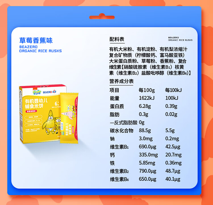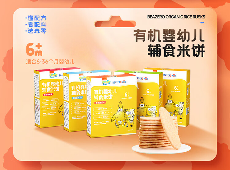未零海绵宝宝婴幼儿有机米饼 原味36g宝宝零食婴儿6个月以上