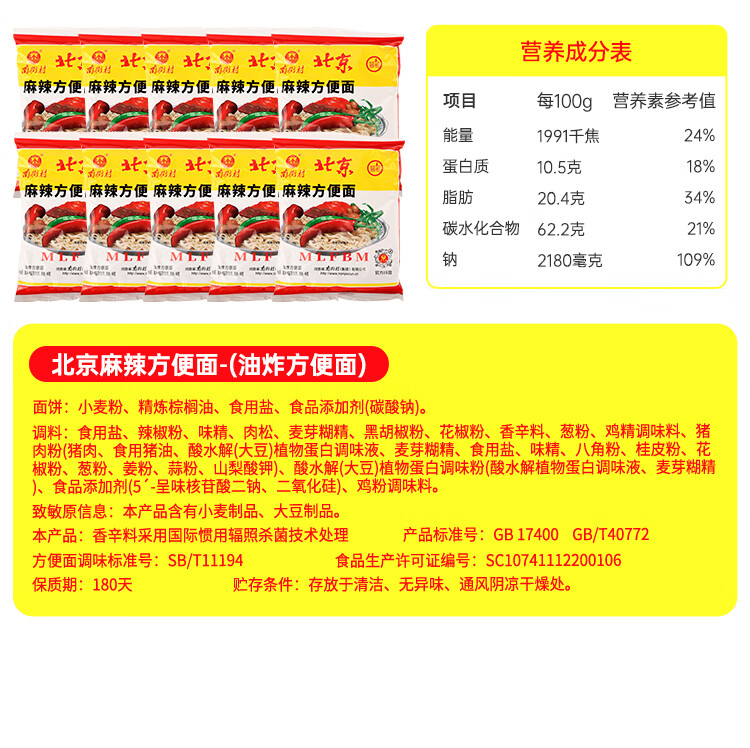 南街村北京面10袋X52g 河南特产泡面干脆面捏碎面休闲零食礼物送礼年货