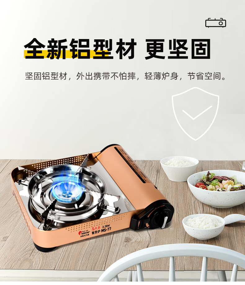 脉鲜卡式炉ms77 土豪金富贵双层防风炉 涮烤燃气灶 便携户外露营炉具 富贵荣华卡式炉+脉鲜JOY烤盘