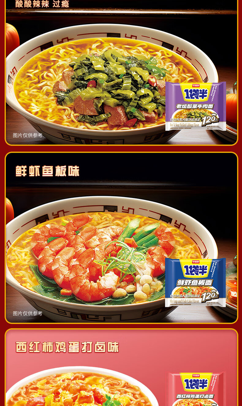 今麦郎鲜虾鱼板面一袋半方便面袋装泡面多种口味混装速食免煮即食宿舍 多种口味混合10袋(可备注口味)