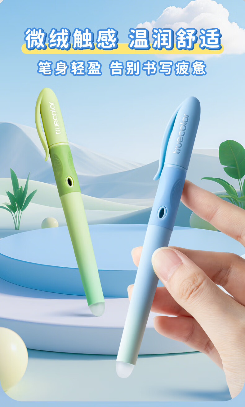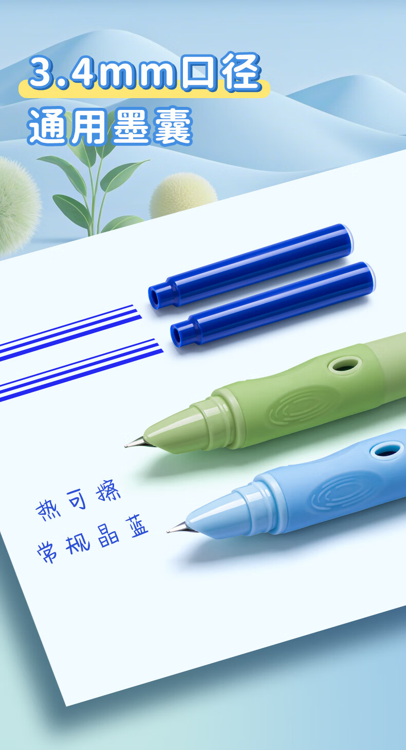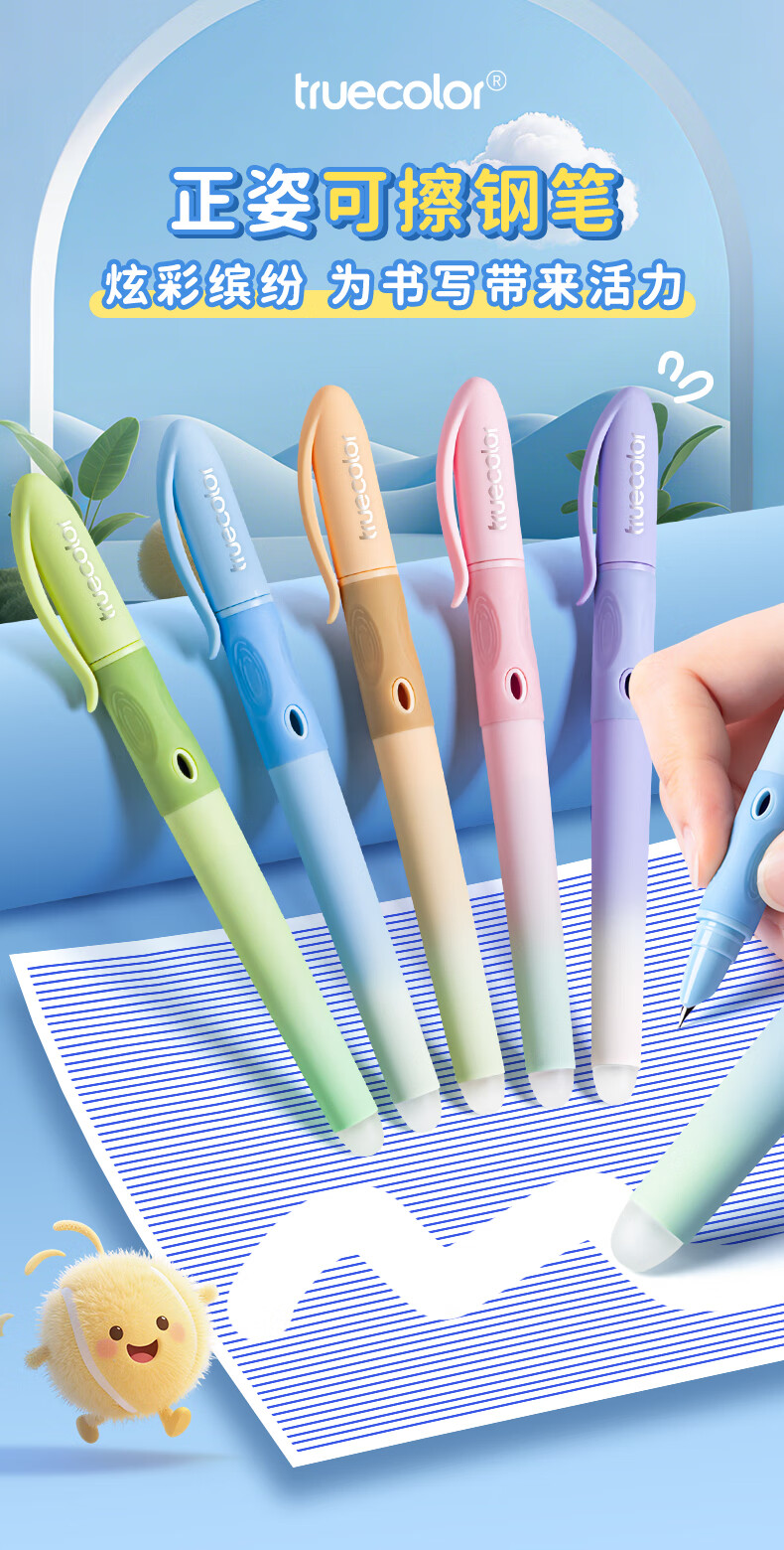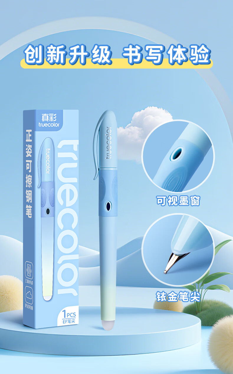 真彩(TRUECOLOR)蓝色热敏可擦钢笔0.38小学生专用三年级儿童练字正姿钢笔可换墨囊高颜值男女生初学者钢笔2877E