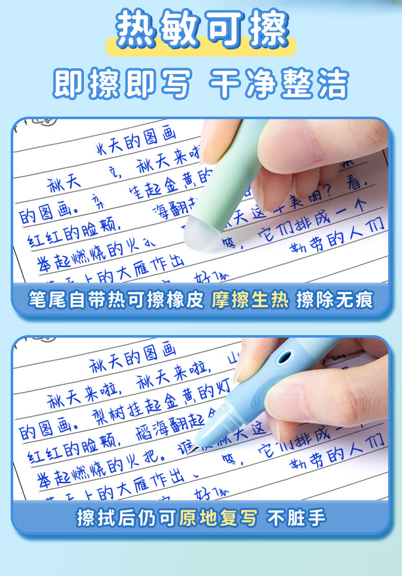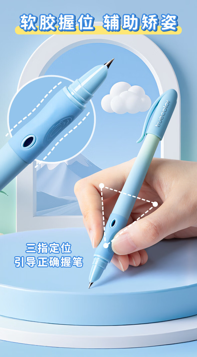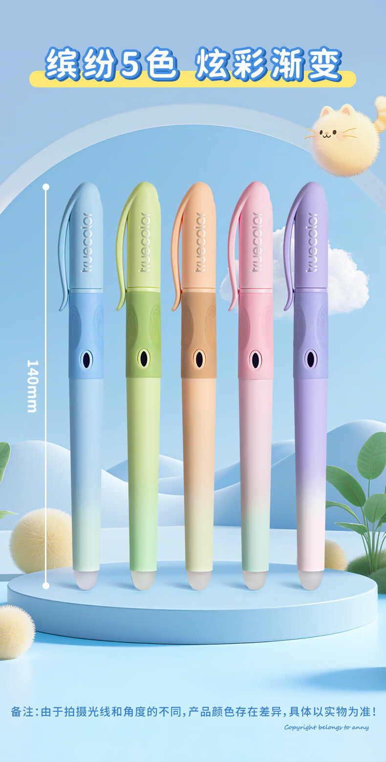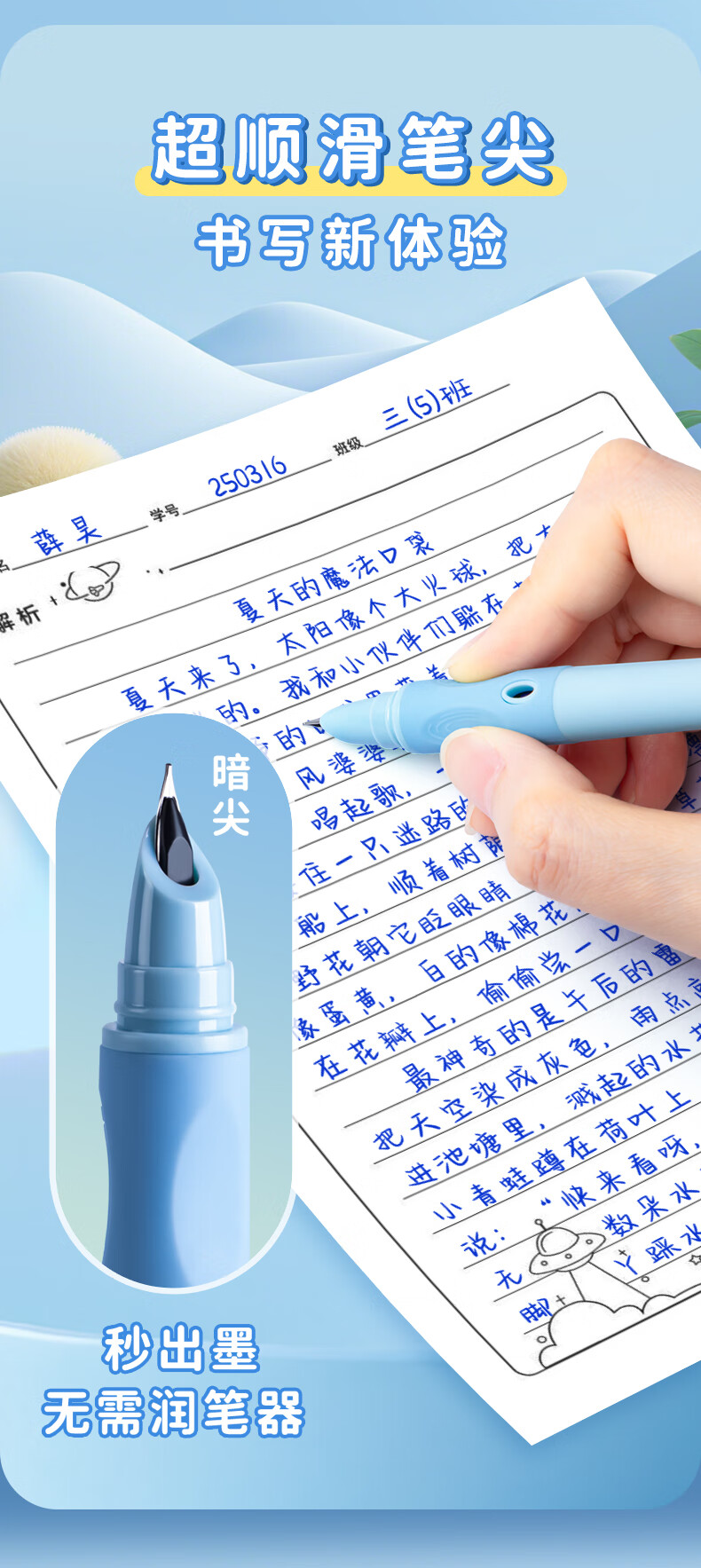 真彩(TRUECOLOR)蓝色热敏可擦钢笔0.38小学生专用三年级儿童练字正姿钢笔可换墨囊高颜值男女生初学者钢笔2877E