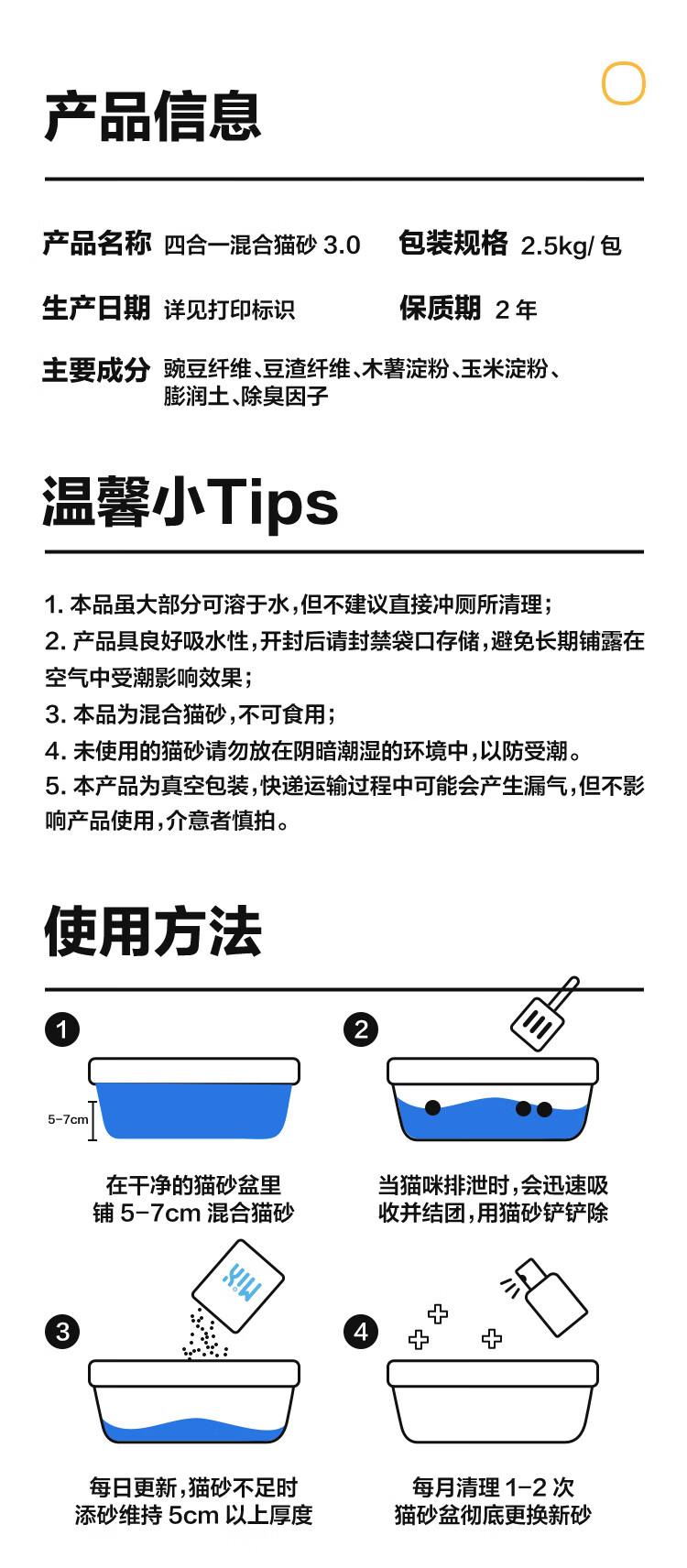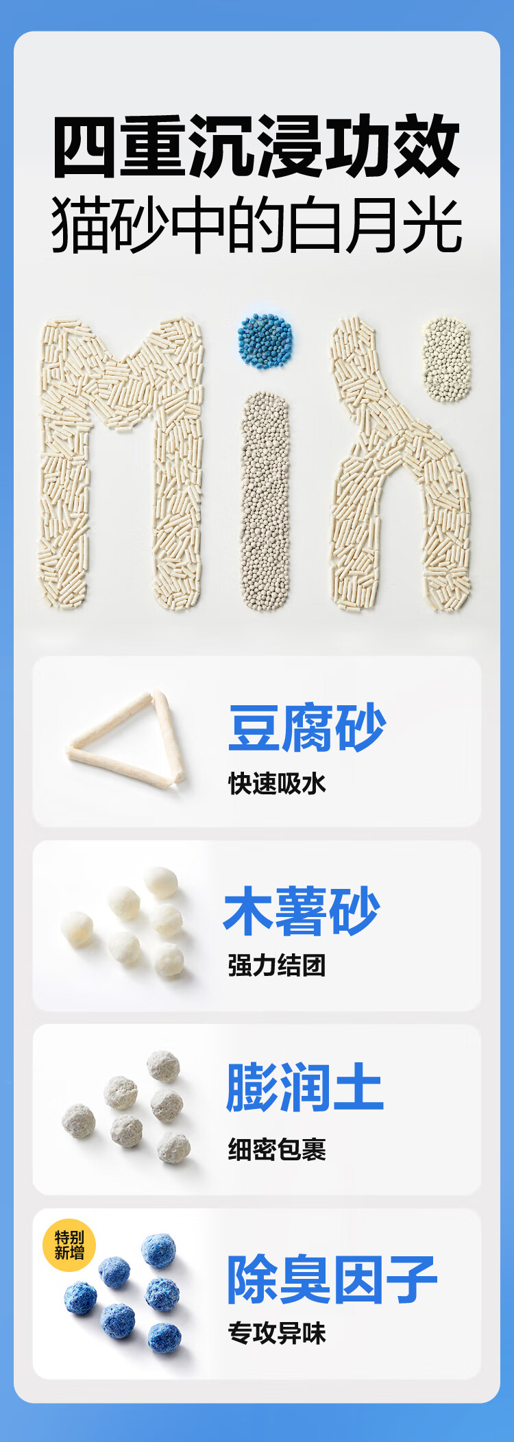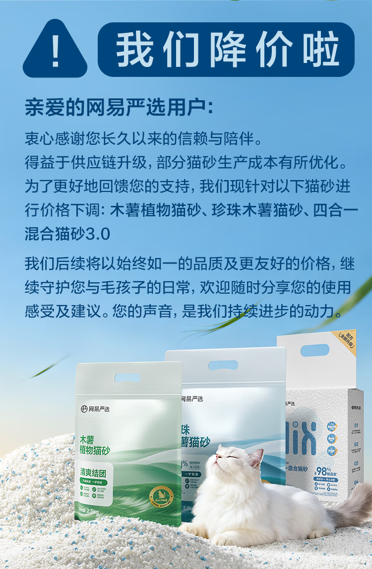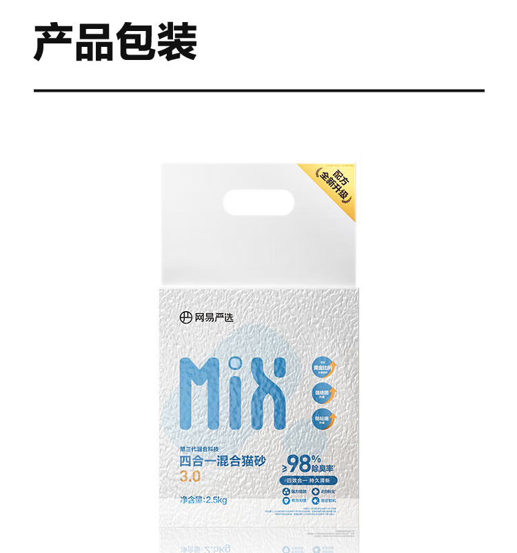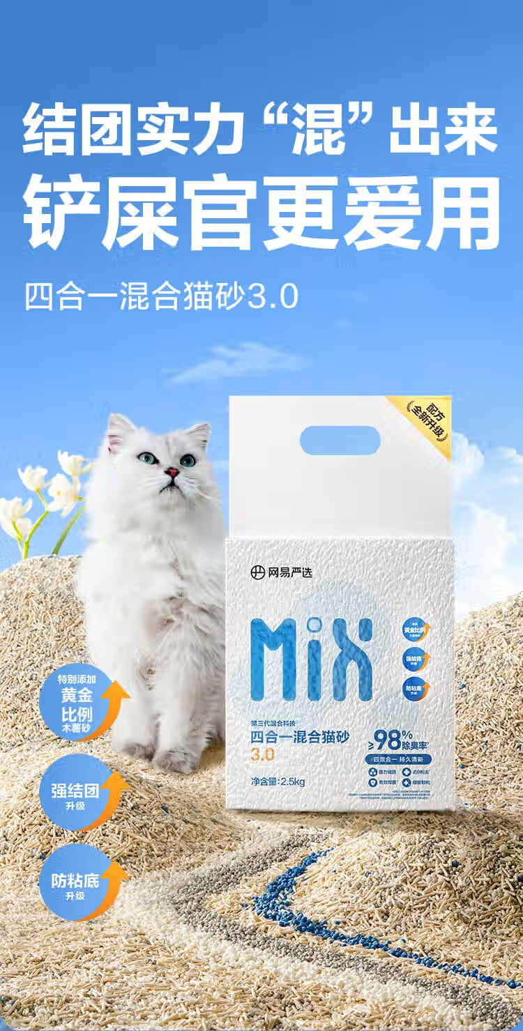 网易严选四合一豆腐膨润土植物混合猫砂结团不沾底除臭木薯猫砂 2.5kg*4包