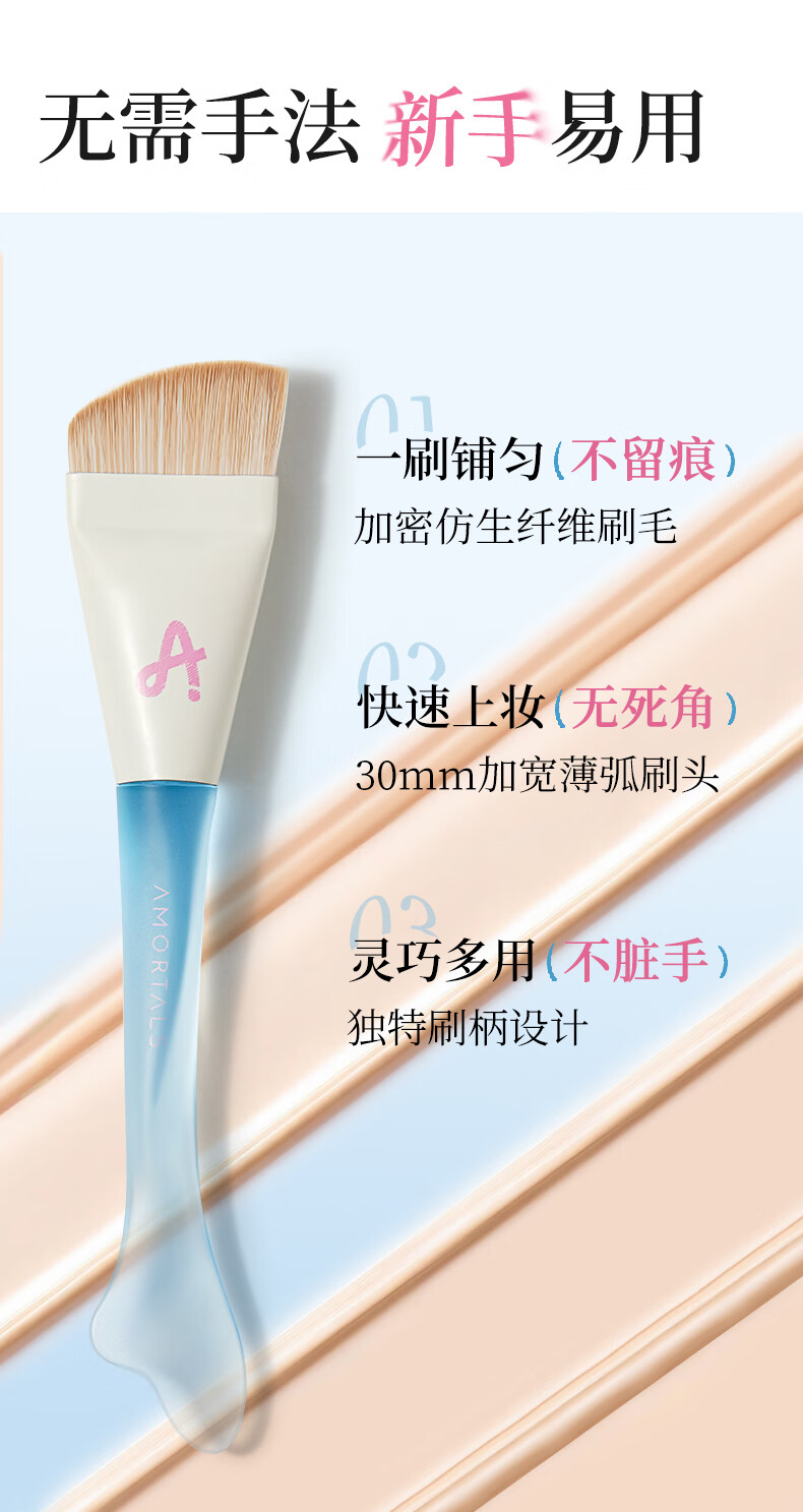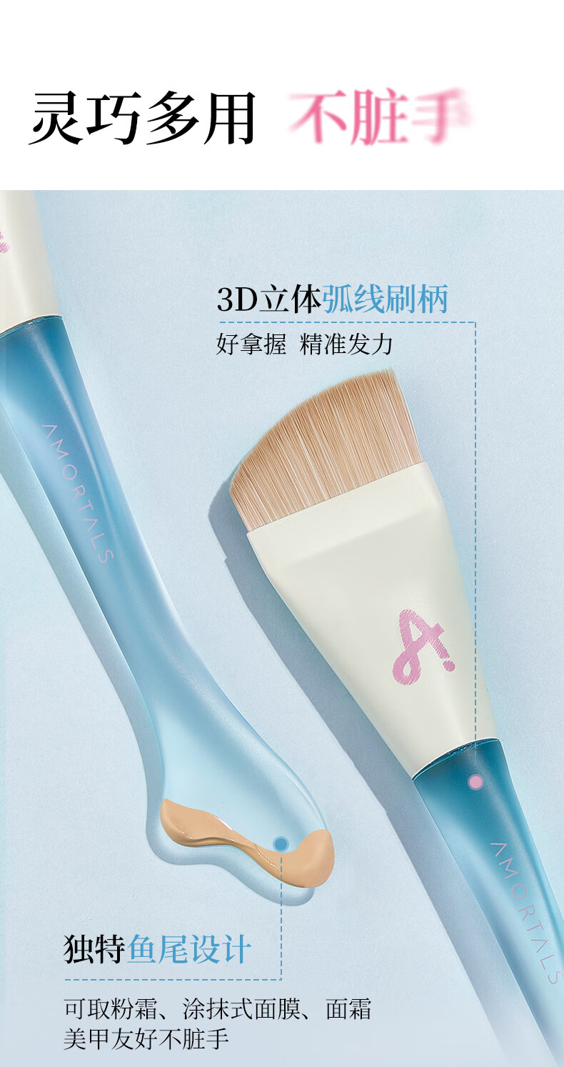 尔木萄(AMORTALS)鱼尾薄弧粉底刷化妆刷面膜刷遮瑕刷粉底刷子化妆工具泥膜刷1支