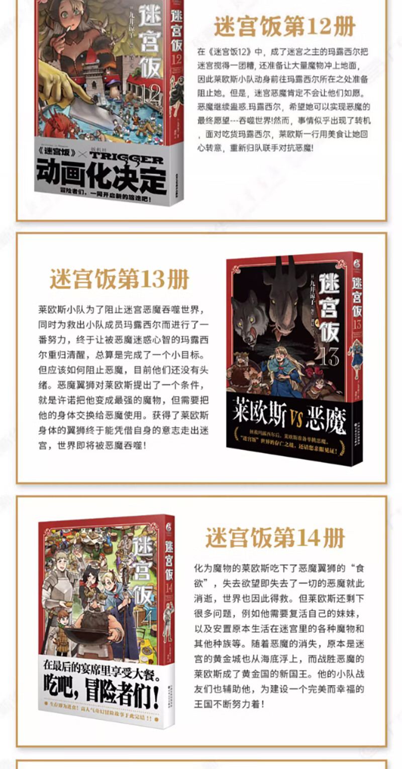 【正版现货】迷宫饭漫画全套19册漫画1-14册+世界导览冒险者权威指南九井谅子作品集迷宫饭公式书设定集插画集动漫画册奇幻美食冒险漫画异世界实体书籍天闻角川 【全14册】迷宫饭漫画1-14已完结