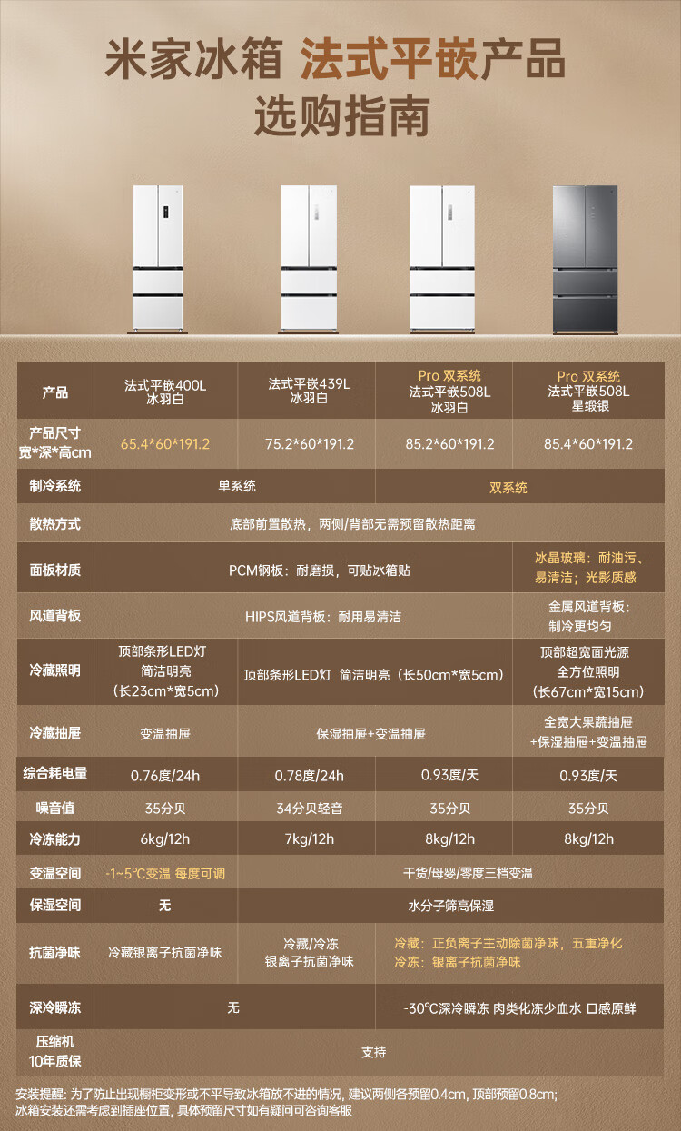 米家小米【国家补贴20%】Pro双系统508升法式四门多门冰箱60cm超薄平嵌一级能效大容量BCD-508WFTMBI
