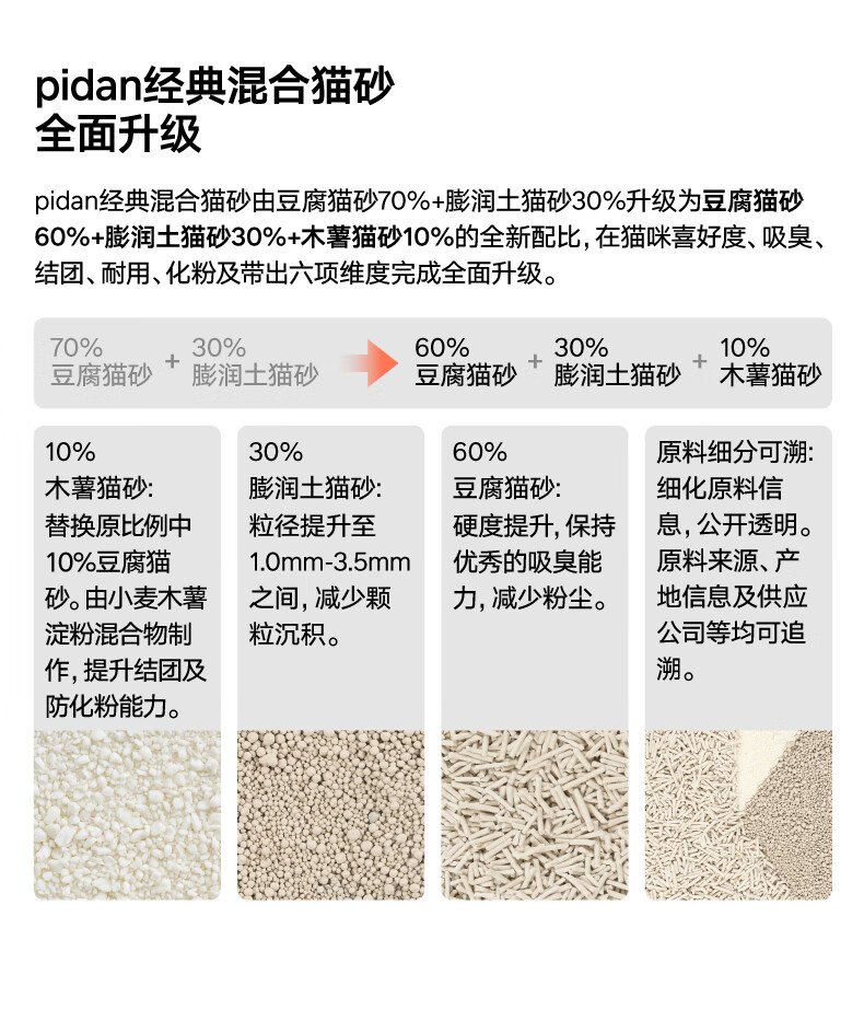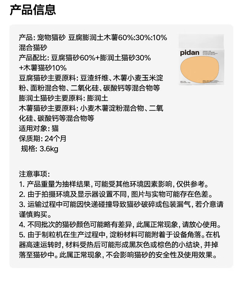 pidan混合猫砂 豆腐膨润土木薯60%:30%:10%混合3.6kg*4包