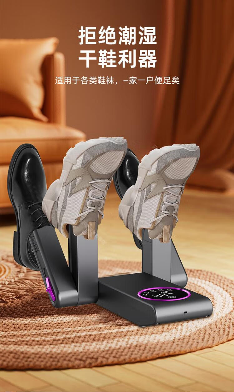 JFHSBS德国智能紫光可伸缩除湿去臭烘鞋器家用定时折叠烘鞋器 小U-黑色