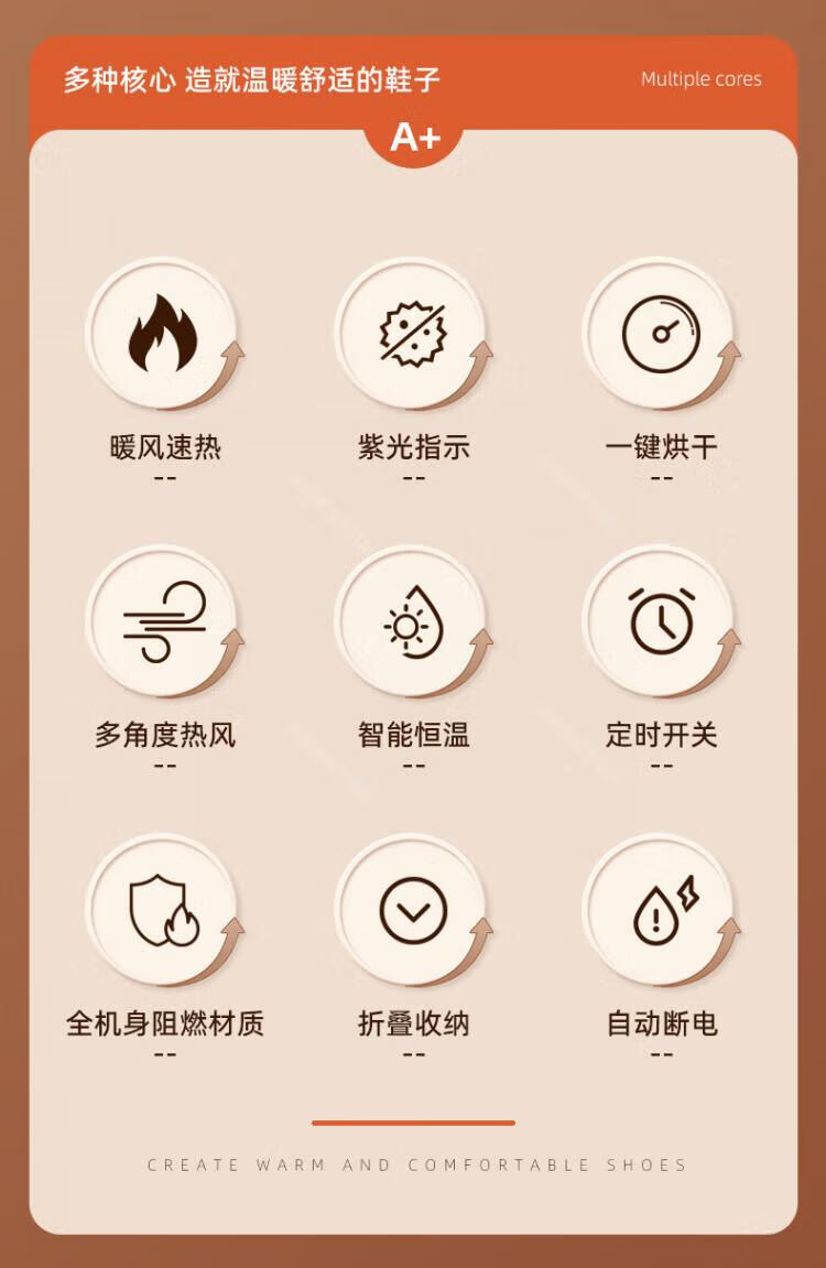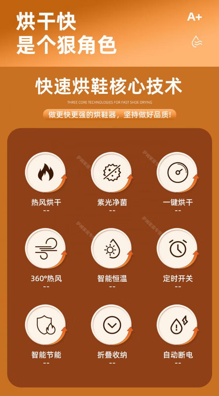WCZ德国新款烘鞋机干鞋器折叠烘干鞋机可伸缩智能紫外线烘鞋器 白色+橙色