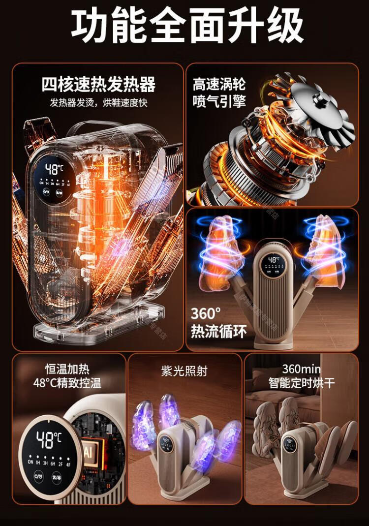 JFHSBS德国双截棍智能定时干鞋器 伸缩可调节烘干机 快干烘鞋器 6代-X3四风道烘鞋器
