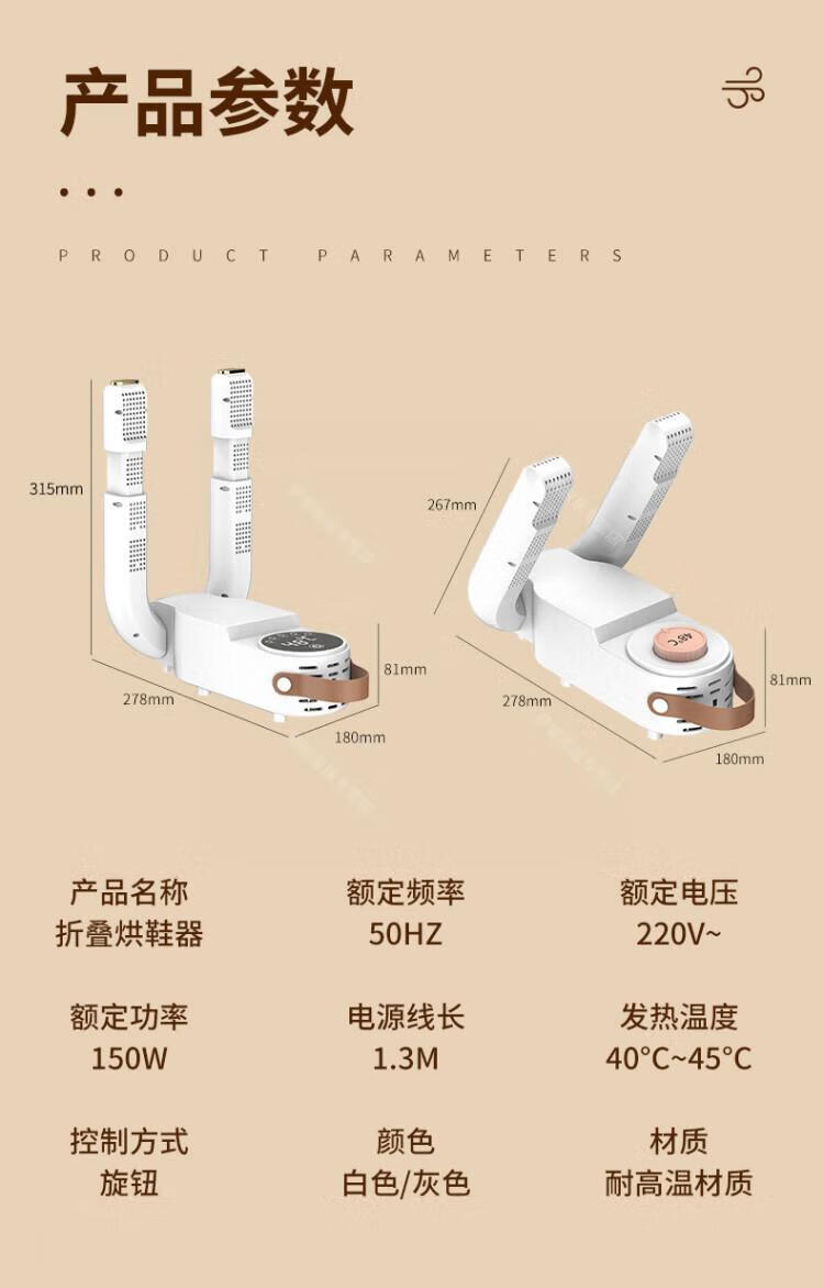 WCZ德国烘鞋器干鞋器恒温速干鞋子烘干器干湿两用机定时自动烘鞋机 白色-可定时