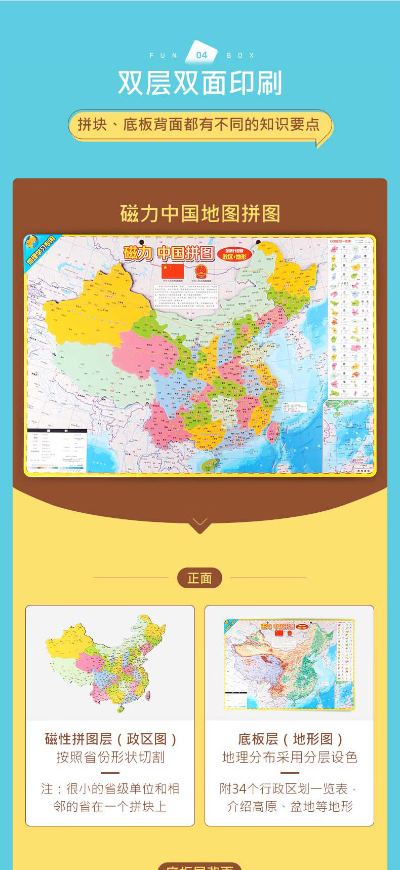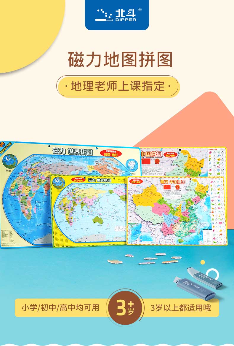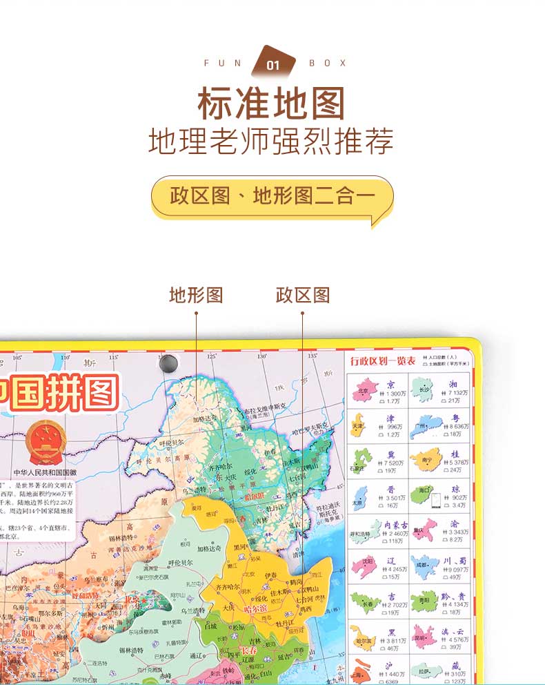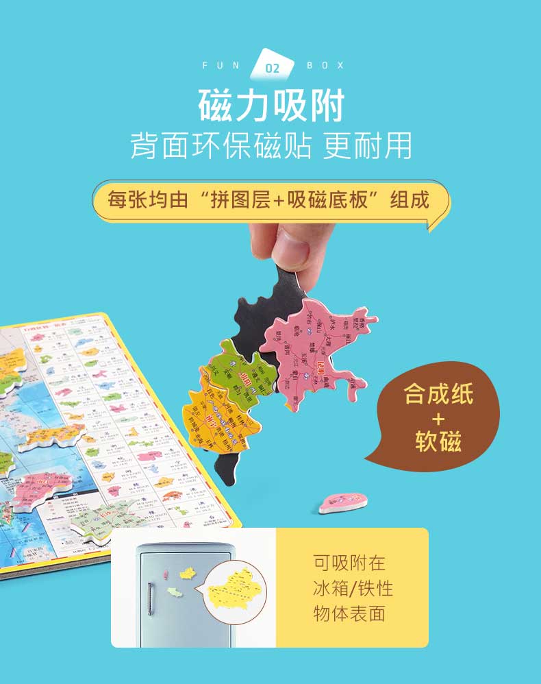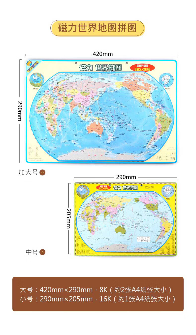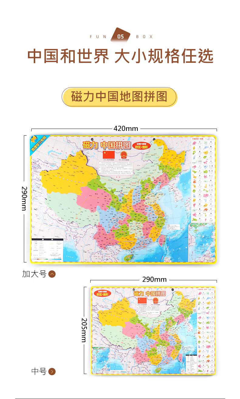 启妙岛北斗中号磁力中国地图拼图磁性玩具初中学生政区地形地理29*20cm