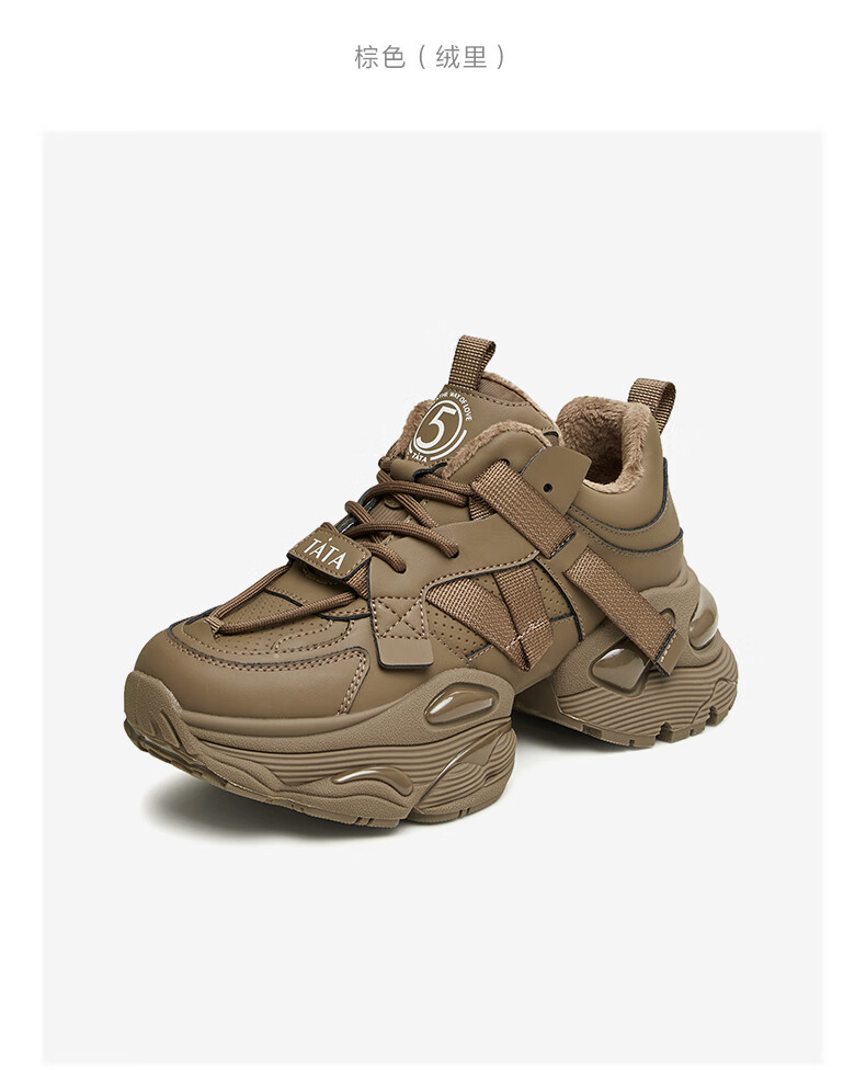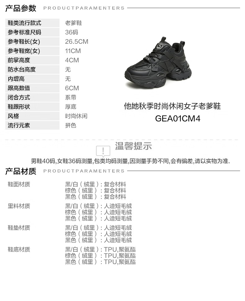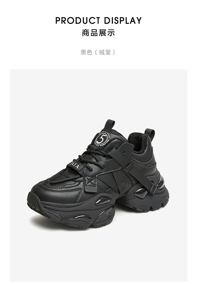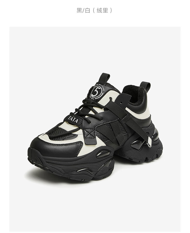 他她厚底休闲老爹鞋女鞋机能加绒休闲运动鞋GEA01CM4黑/白(绒里) 39