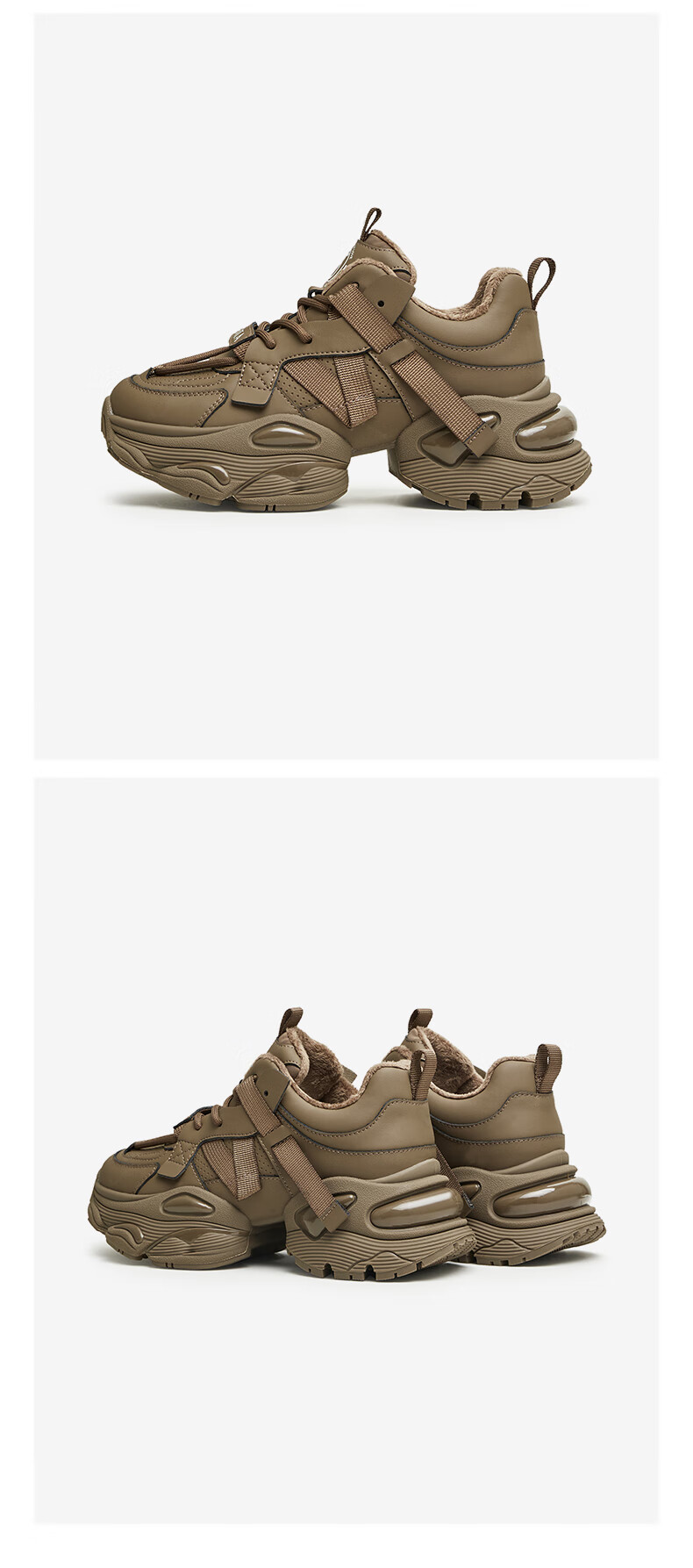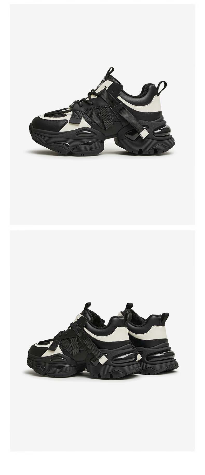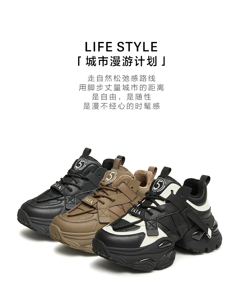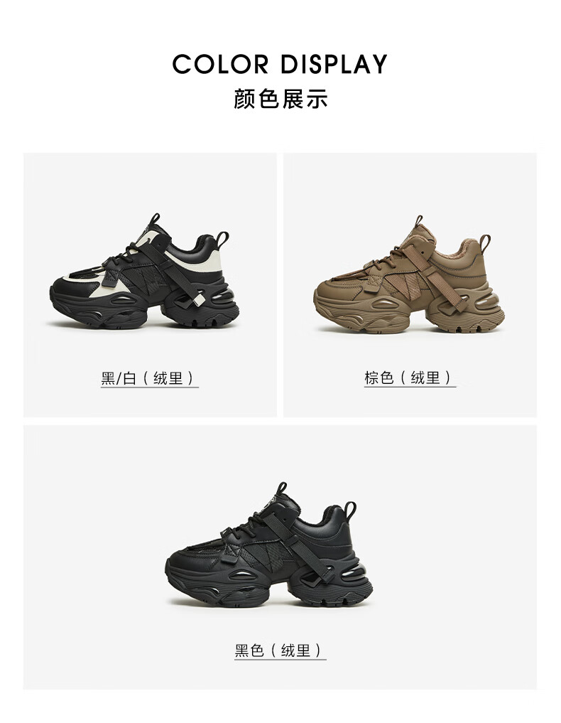 他她厚底休闲老爹鞋女鞋机能加绒休闲运动鞋GEA01CM4黑/白(绒里) 39