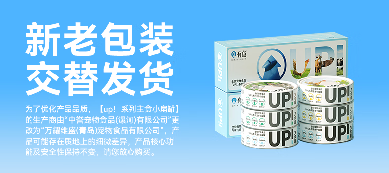 有鱼猫罐头UP系列小扁罐湿粮包主食罐 鸡牛兔鱼混合口味 100g*24罐