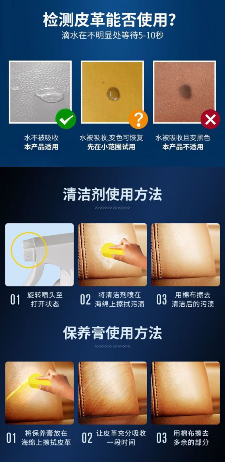 ZYUO【日本】皮革清洁剂护理剂套装真皮沙发保养油皮具去污皮衣包鞋清 1套体验装 皮革清洁剂护理保养油强力去污皮沙发清洗神器免水洗