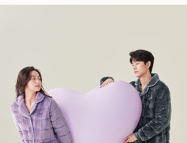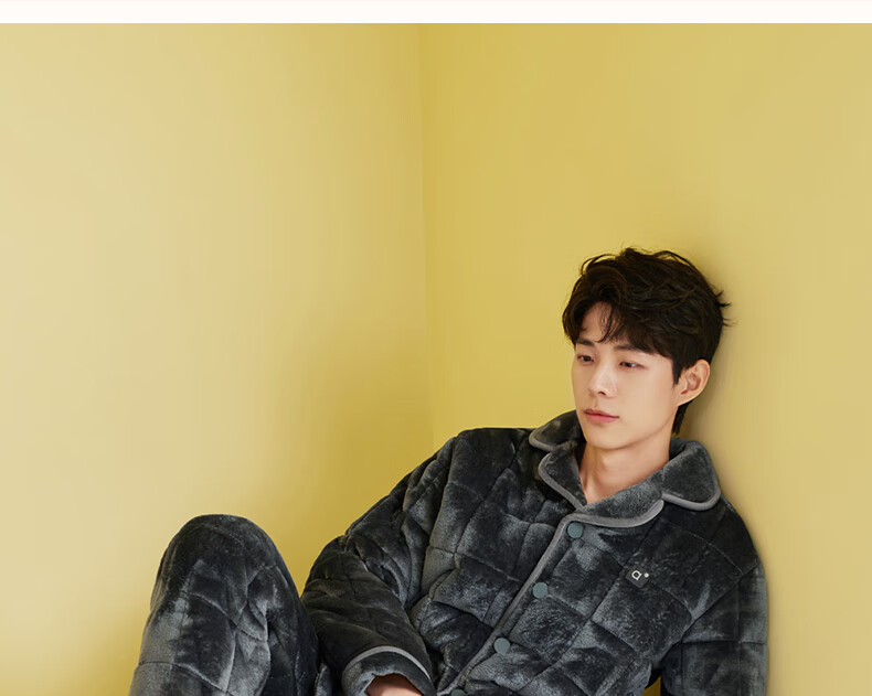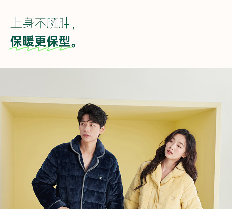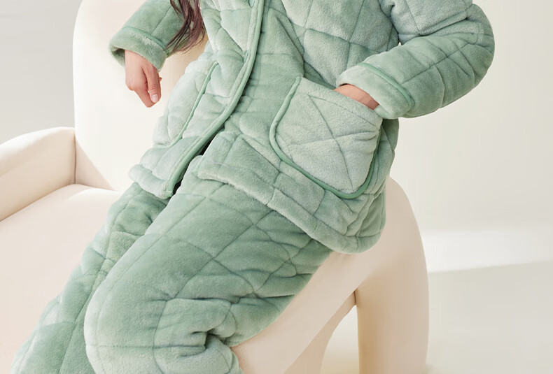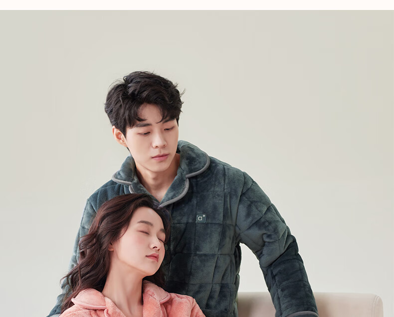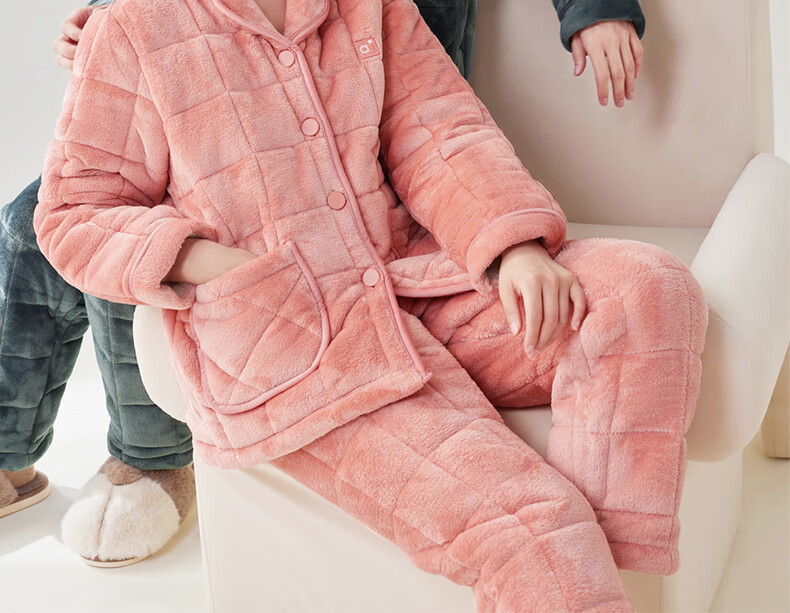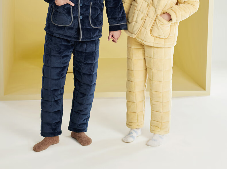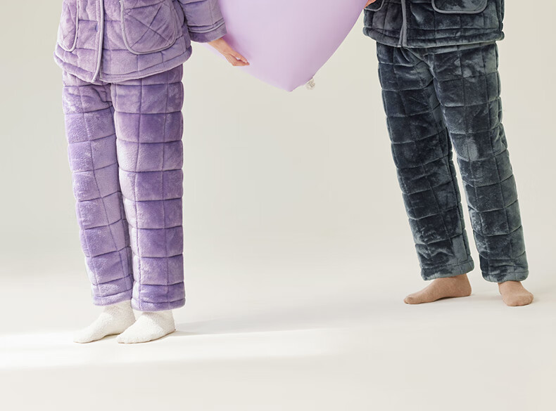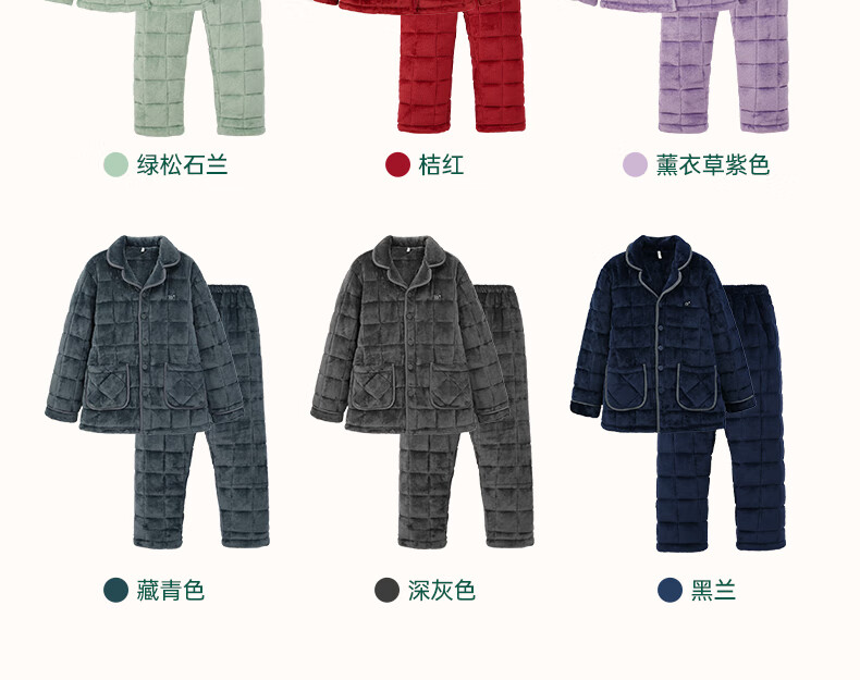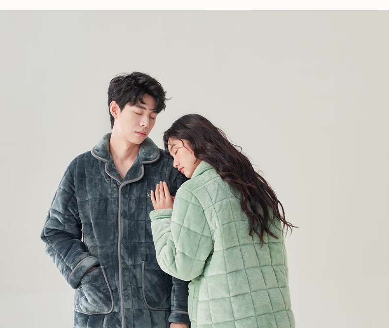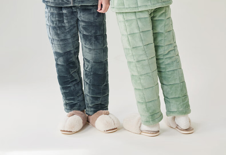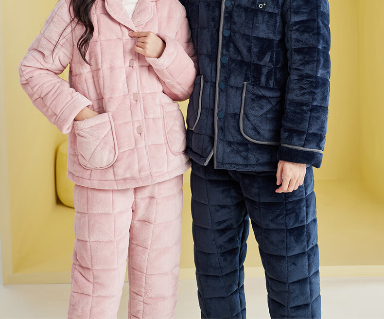安之伴冬季情侣睡衣【三层珊瑚绒夹棉加厚 保暖防静电】休闲家居服套装 A黑兰 XL