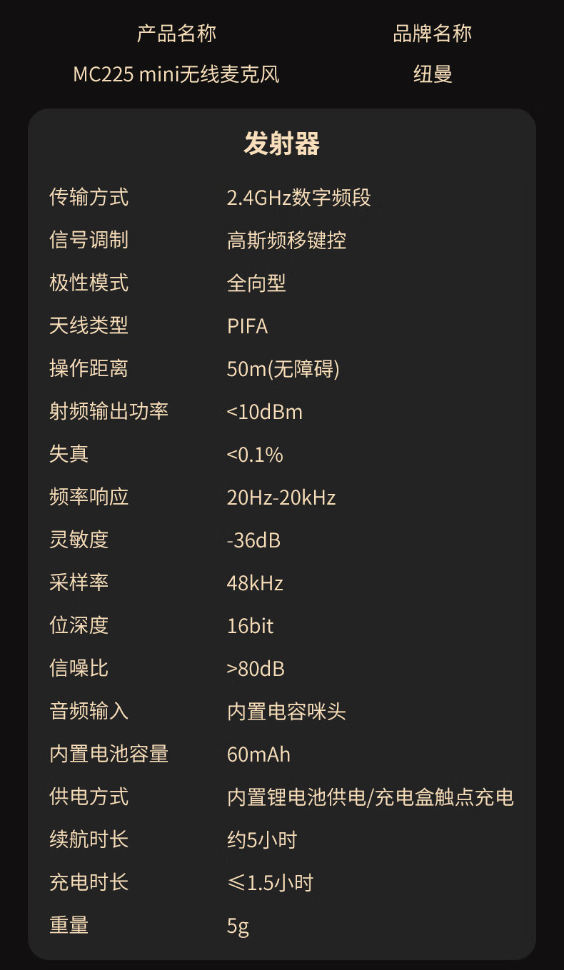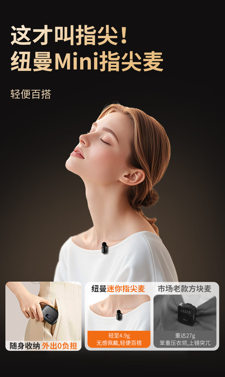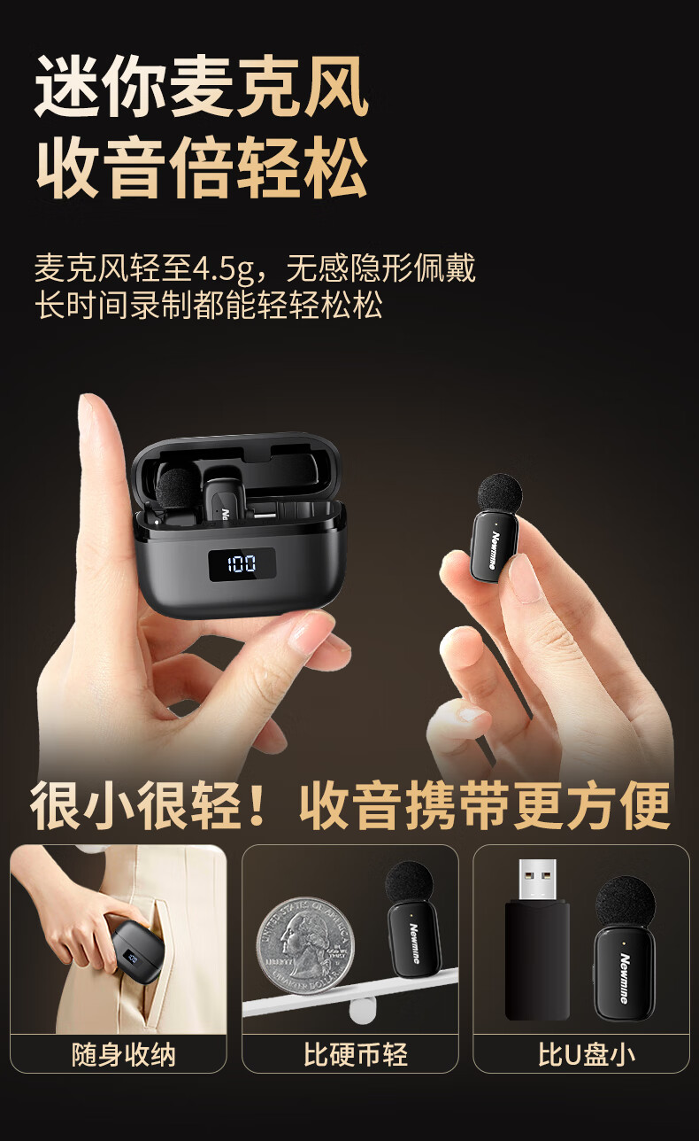 纽曼(Newmine)MC225无线领夹麦克风主播直播专用迷你收音麦户外采访短视频会议录音设备专业降噪收音器
