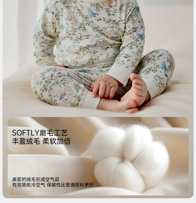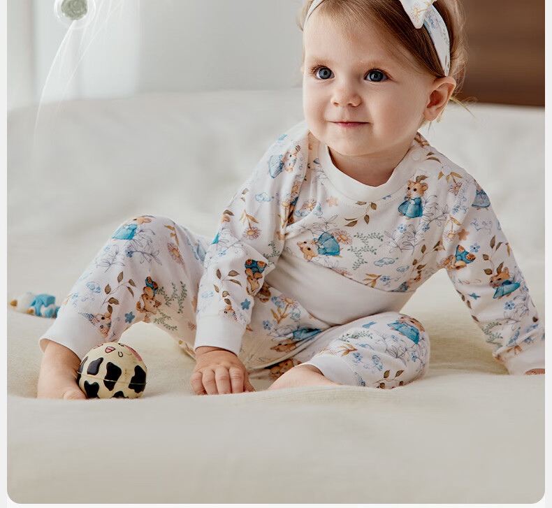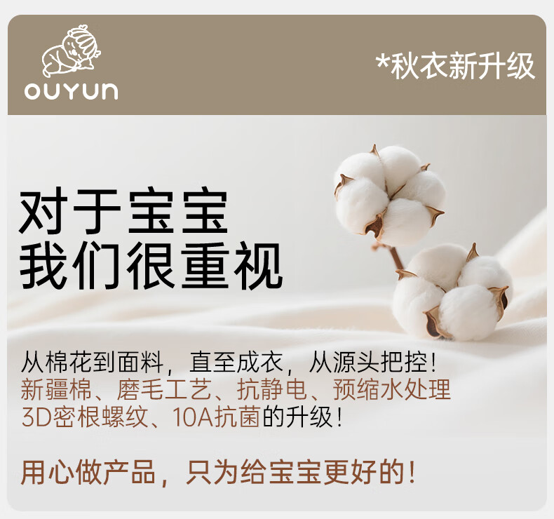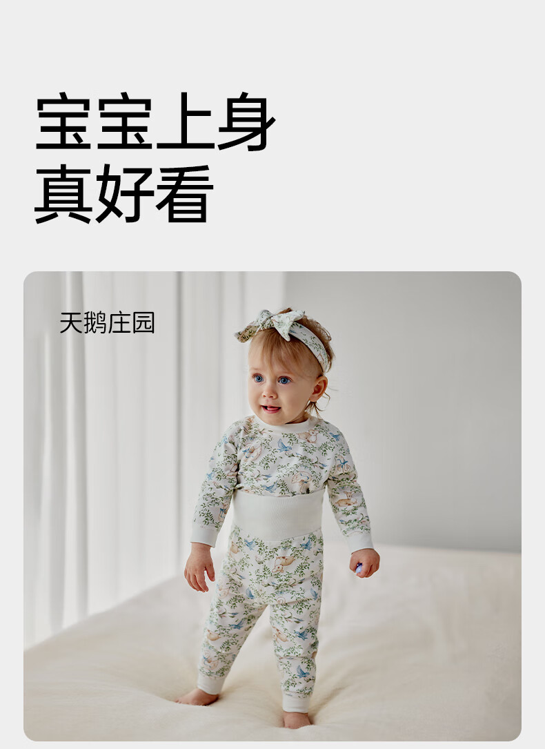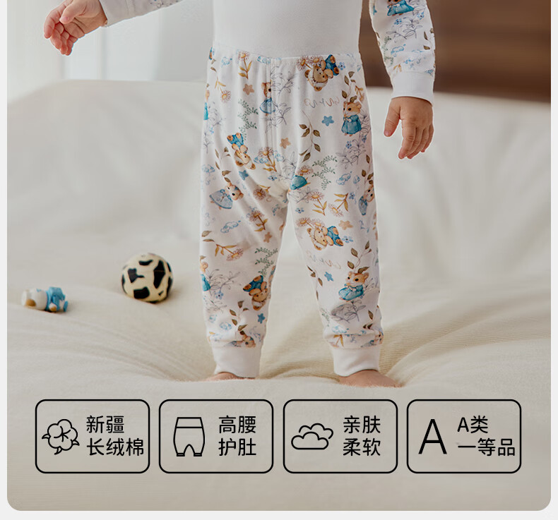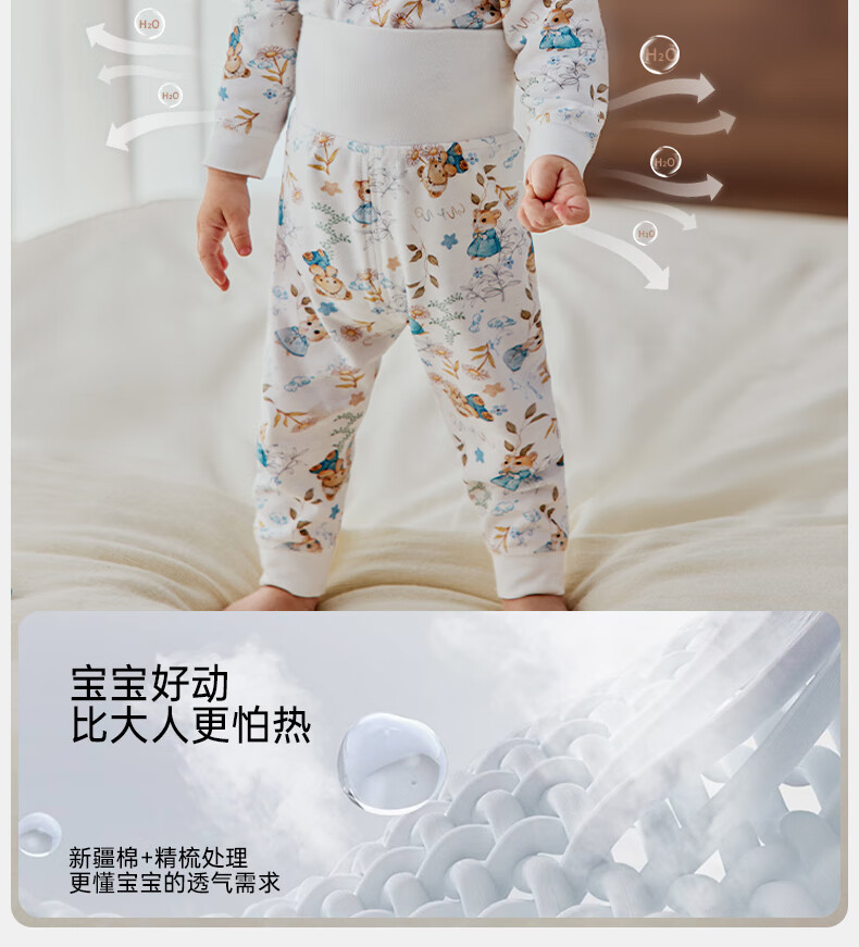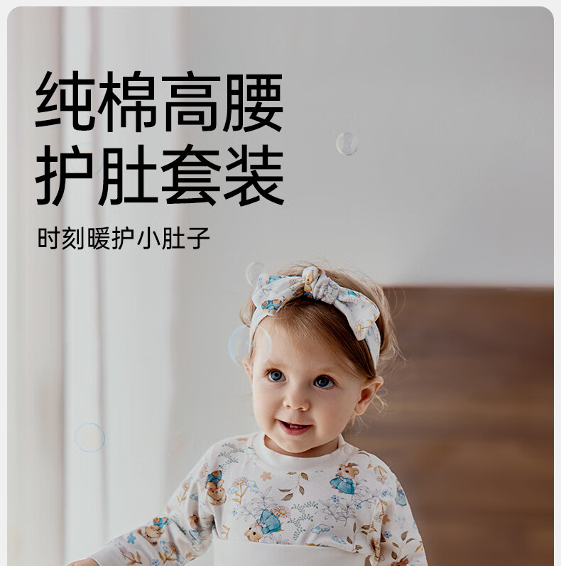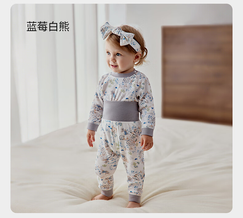 欧孕(OUYUN)宝宝秋衣套装儿童保暖内衣纯棉高腰婴童护肚男童女童秋冬睡衣 蓝莓白熊 【高腰护肚 10A抑菌】 80 【建议身高:80cm-90cm】
