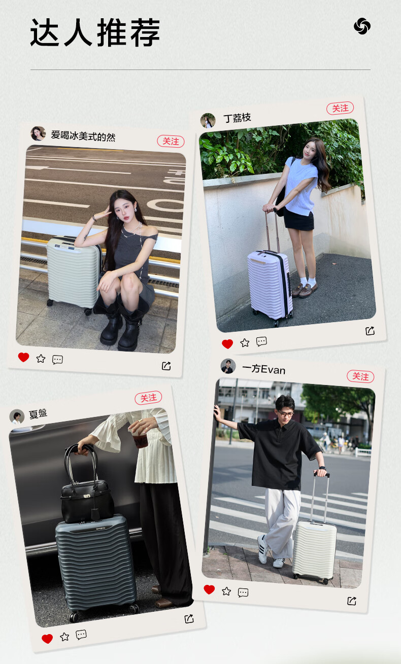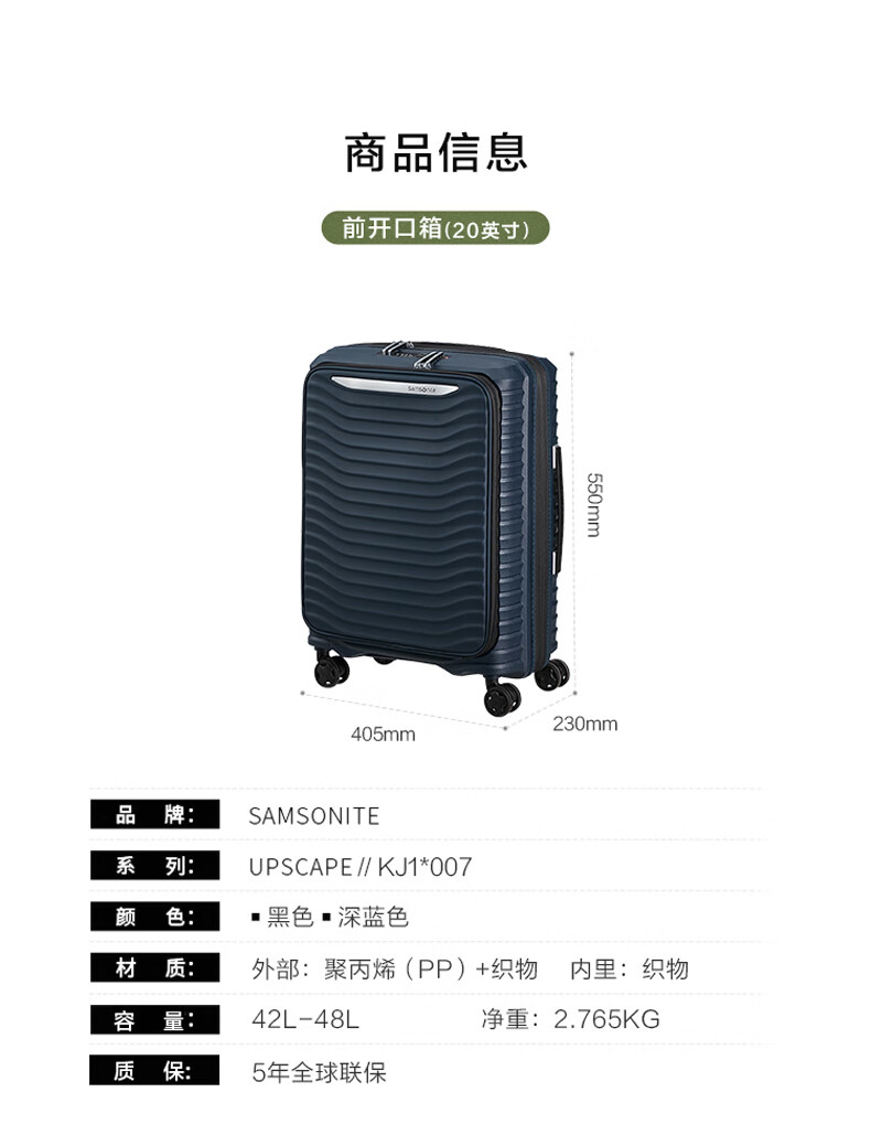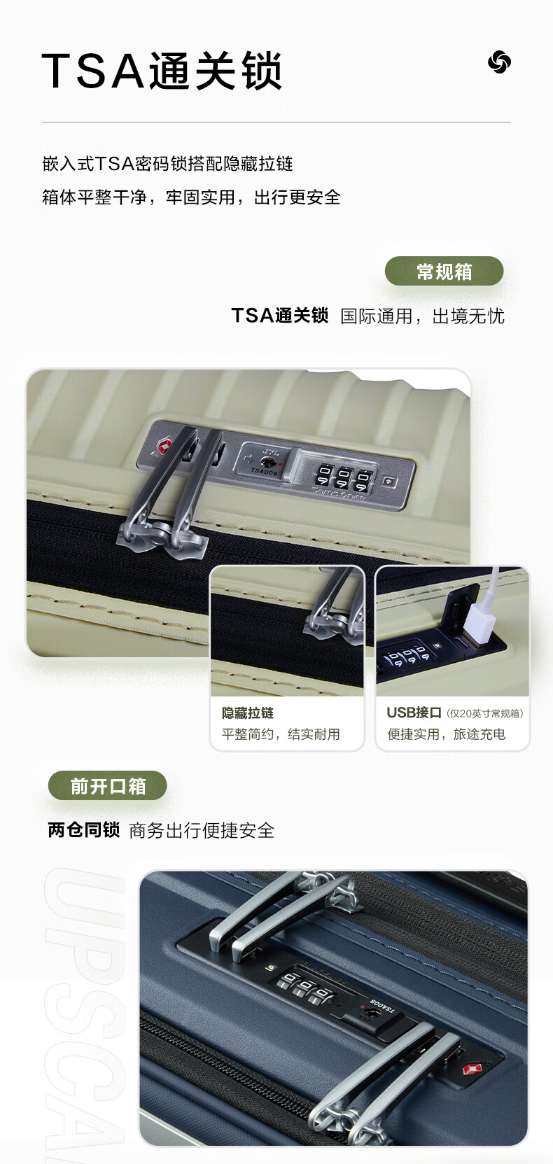 新秀丽(Samsonite)行李箱20英寸简约大波浪箱登机拉杆箱旅行箱包KJ1黑色密码箱