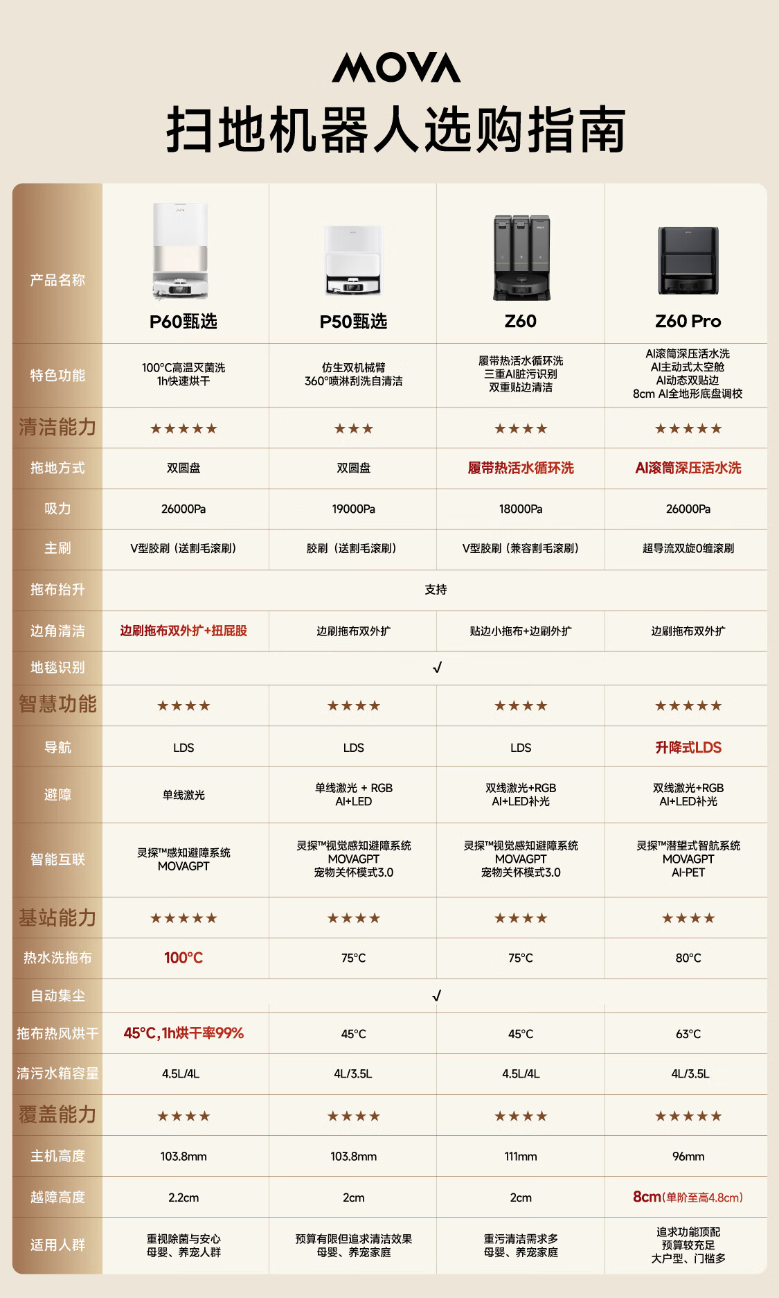 Mova扫地机器人扫拖一体自动清洗集尘 洗地机洗拖吸一体自动清洗热水洗烘干拖布【P50甄选】水箱版