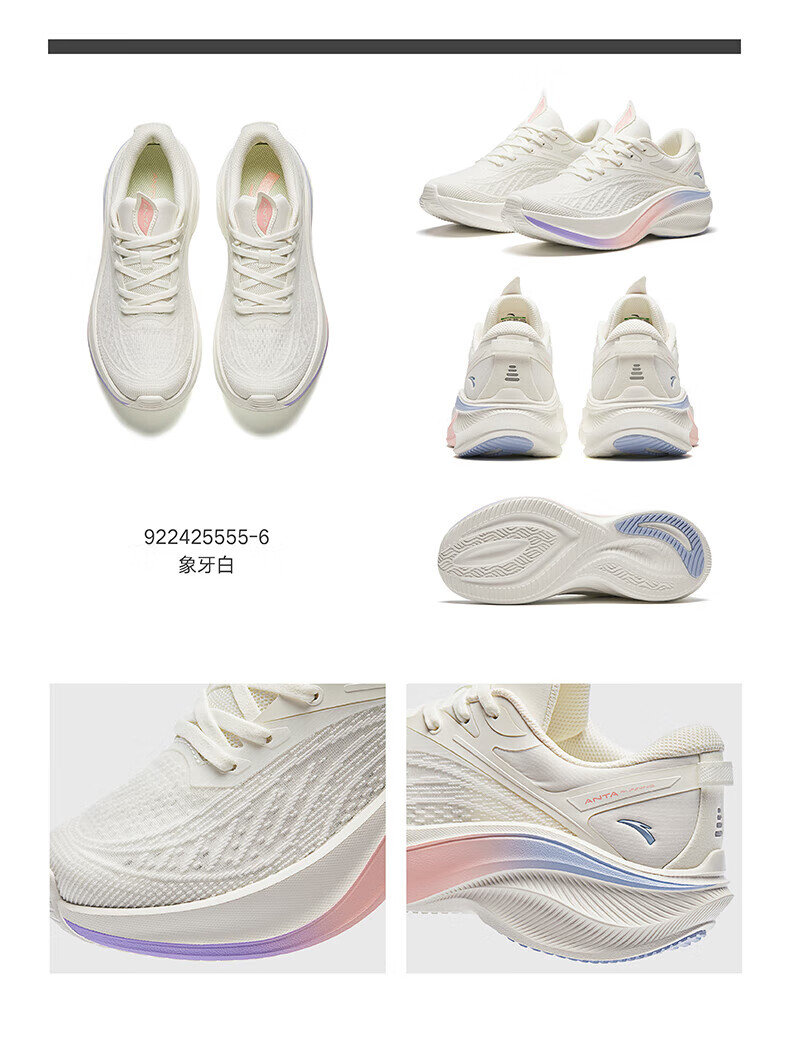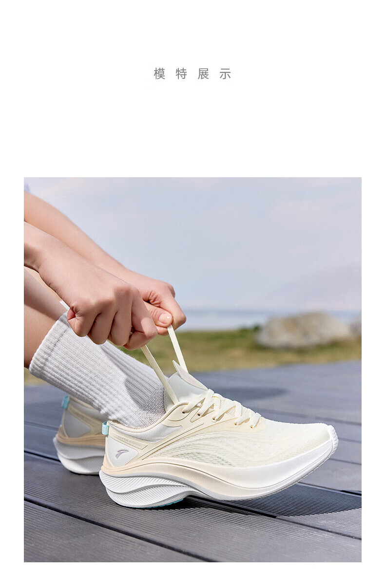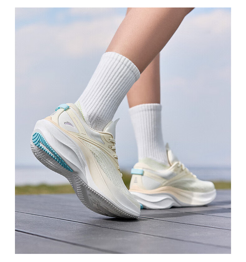 安踏叶子5丨跑步鞋女轻便缓震运动鞋女厚底增高女跳绳鞋通勤慢跑鞋女 【叶子5】象牙白/浅曦绿/绿-1 37.5 (女)