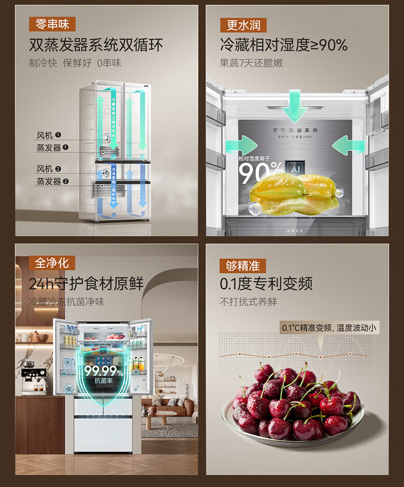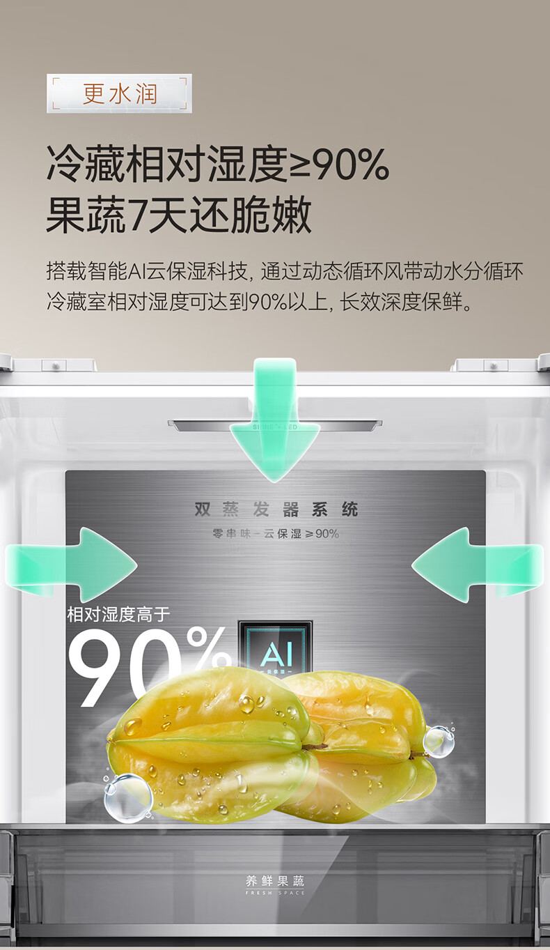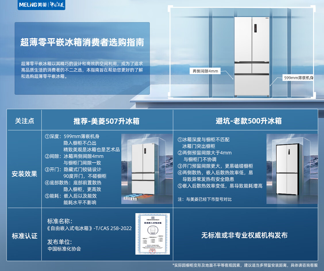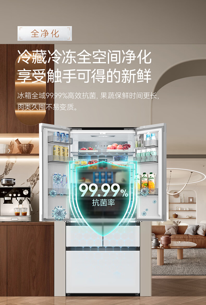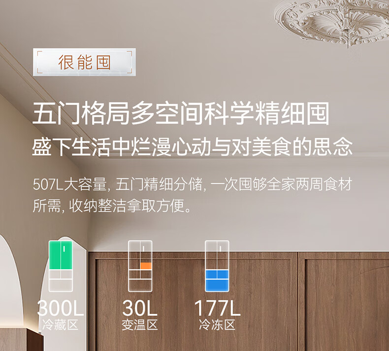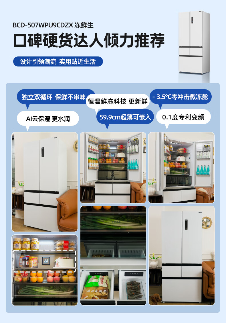 美菱(MeiLing)【冻鲜生】冰箱507升法式五门双开对开门多门家用超薄零平嵌入双循环风冷无霜大容量补贴电冰箱 【冻鲜生】BCD-507WPU9CDZX-冰川白