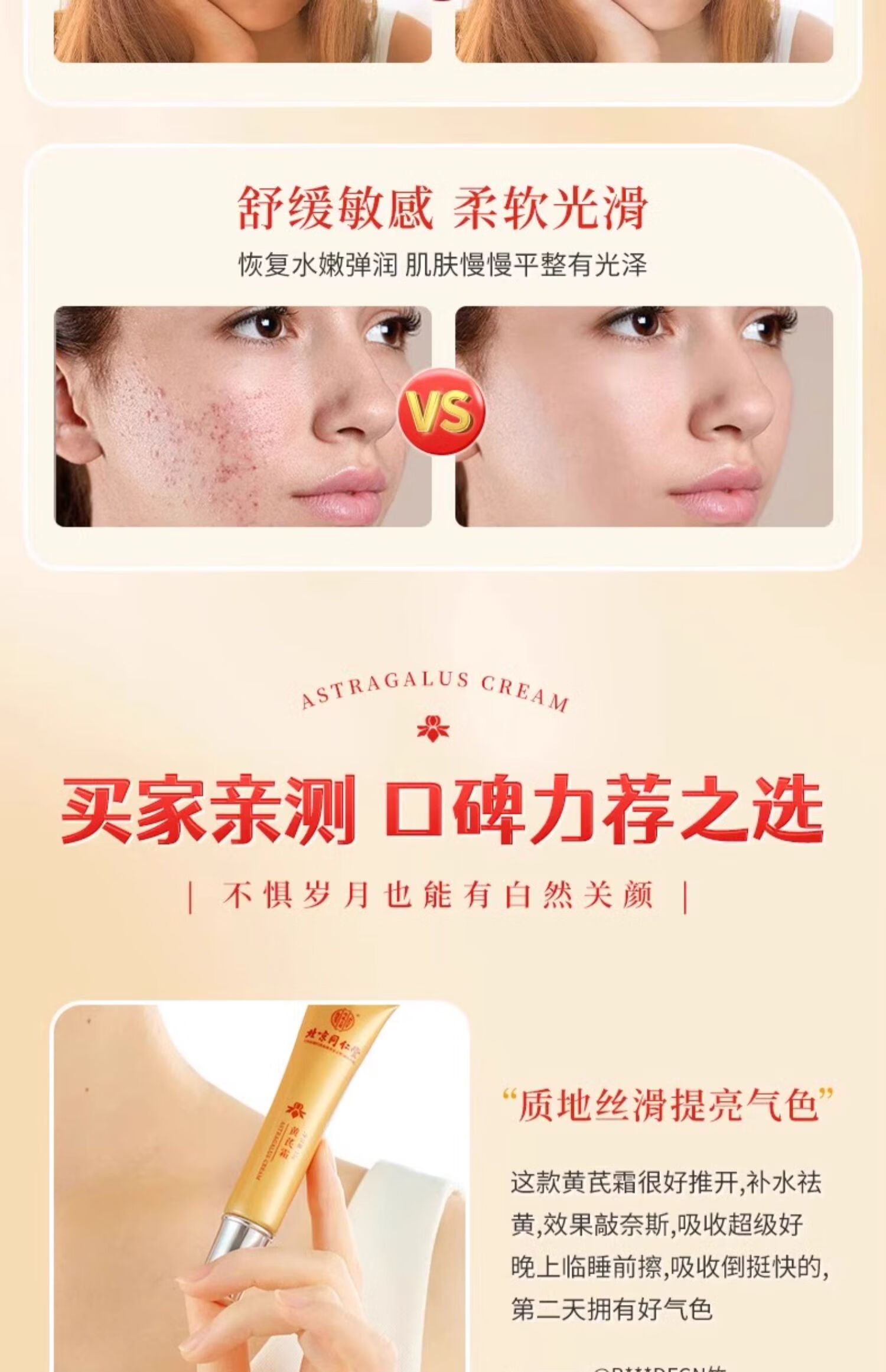 内廷上用北京同仁堂黄芪霜提亮去黄暗沉老牌国货补水保湿滋润抗皱紧致面霜 【2盒分享装】15g/盒