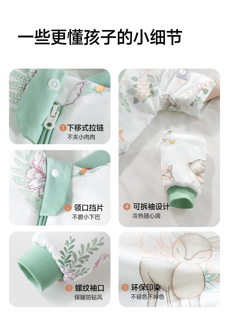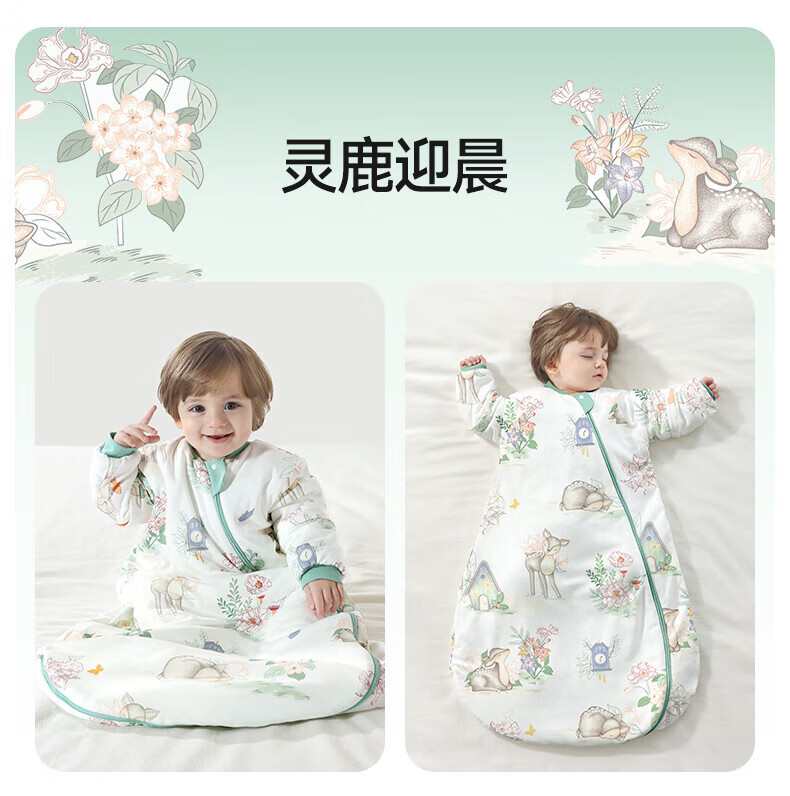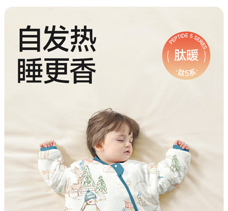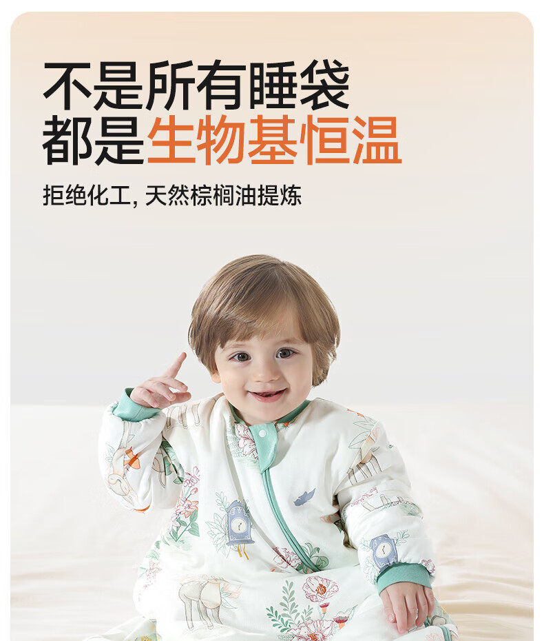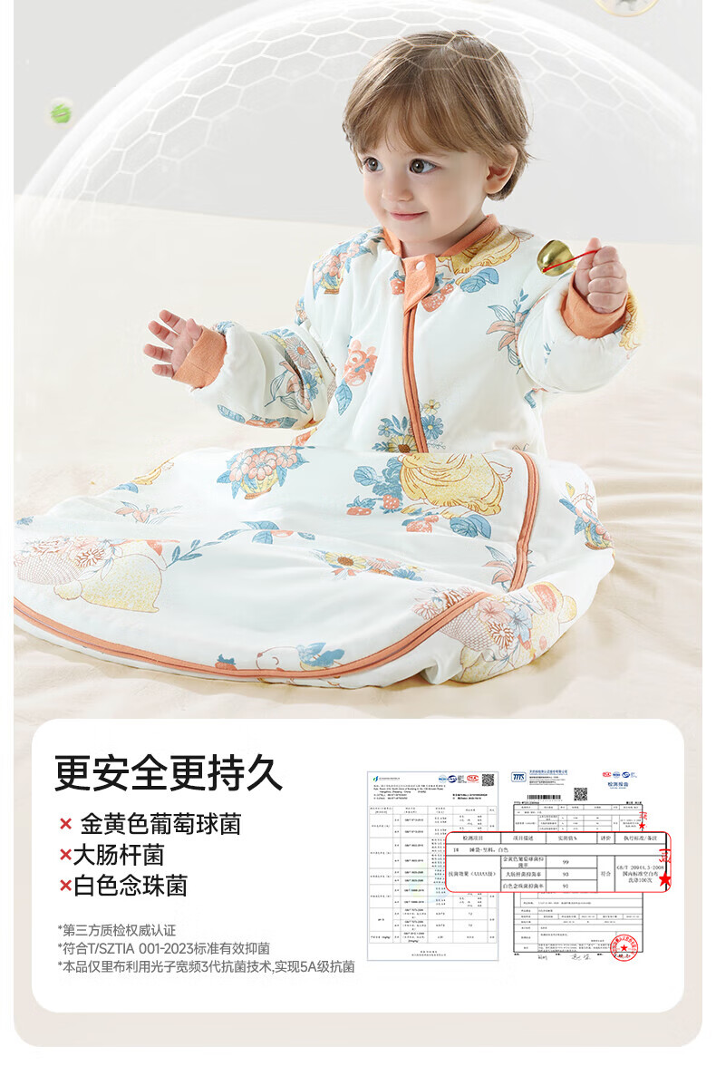 贝肽斯睡袋婴儿春秋恒温新生儿童宝宝睡袋一体式防踢被惊跳包被发热神器 感温【春秋双层 室温20-26°】海之微笑 S码【适合身高55-70cm】建议年龄0-9个月