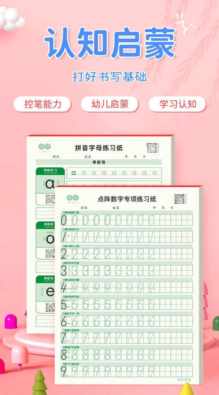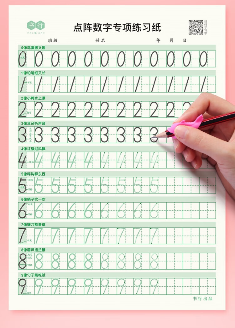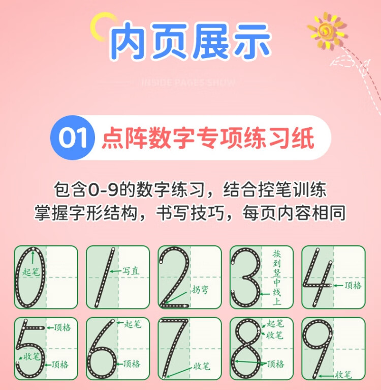 【全网低价】书行 点阵数字0-9练字帖儿童控笔训练一年级幼儿园学前描红练习纸 数字5本装