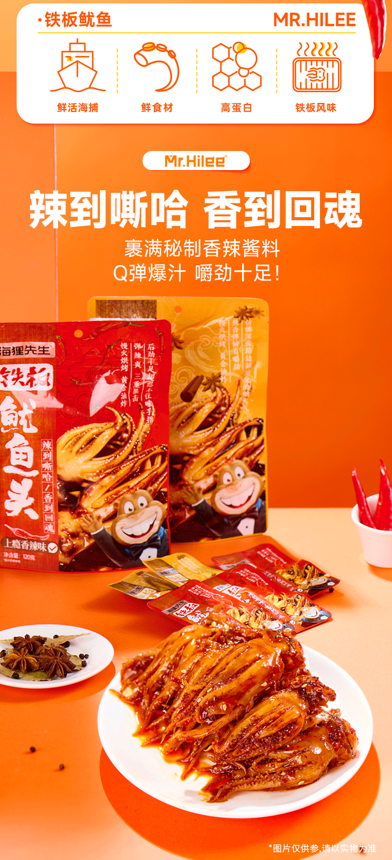 海狸先生铁板鱿鱼须鲜烤鱿鱼即食海味大连特产鱿鱼头下酒菜 【2袋混合】香辣味100g*1袋+烧烤味100g*1袋