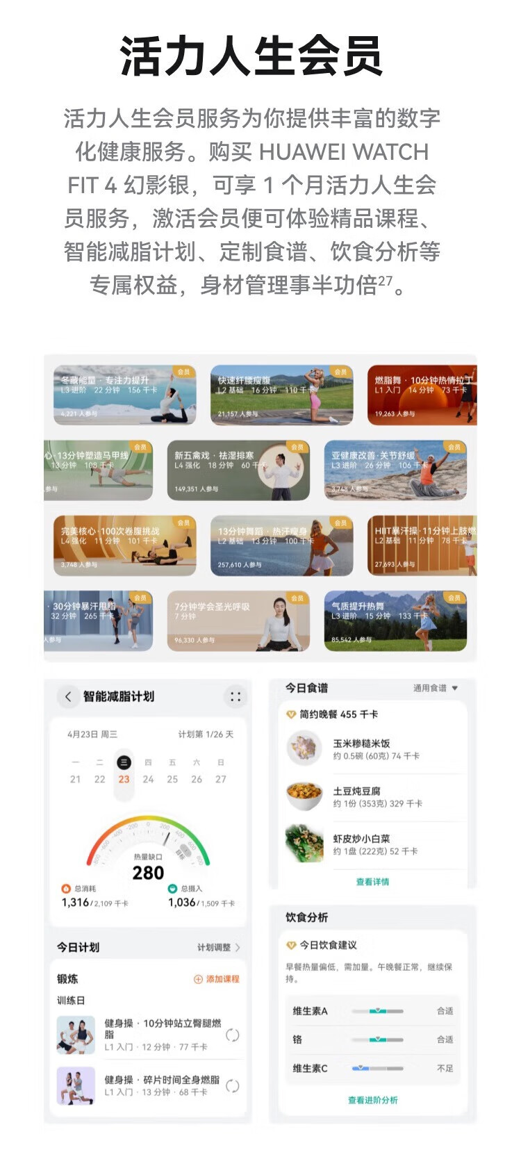华为(HUAWEI)手表WATCH FIT 4【咨询享优惠】运动智能健康管理蓝牙通话轻薄NFC门禁交通支付送男女士朋友Pro3 韵律黑丨送定制表带+精美表盘
