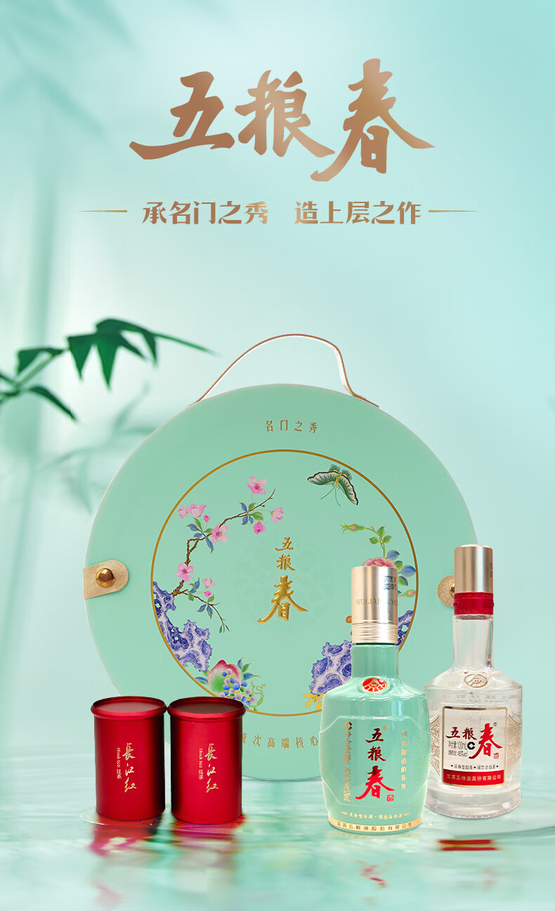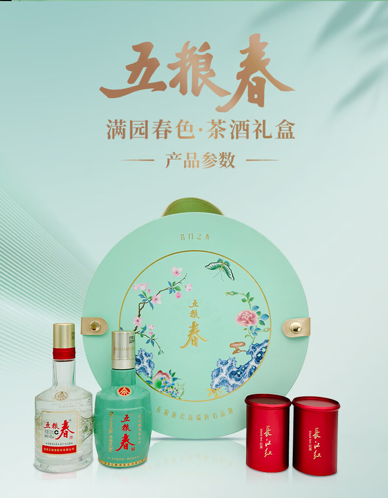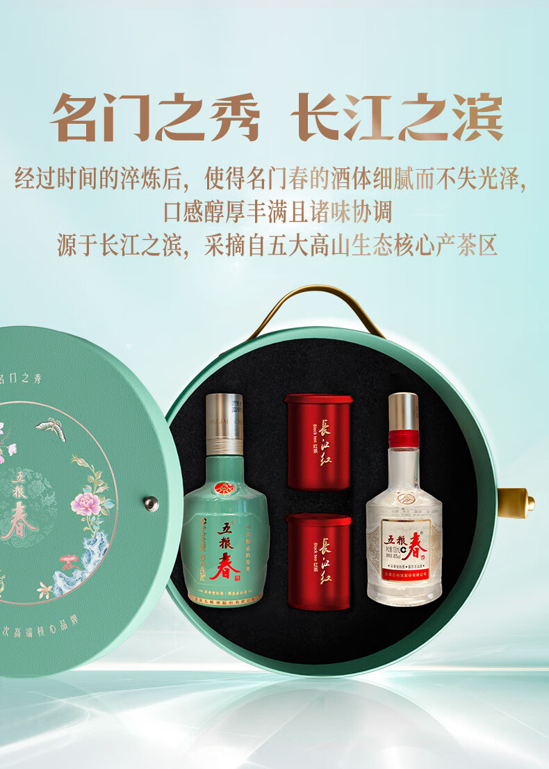 林湖飘雪【详情页领优惠券】春色满园礼盒长江红+五粮春小酒礼盒红茶茶叶