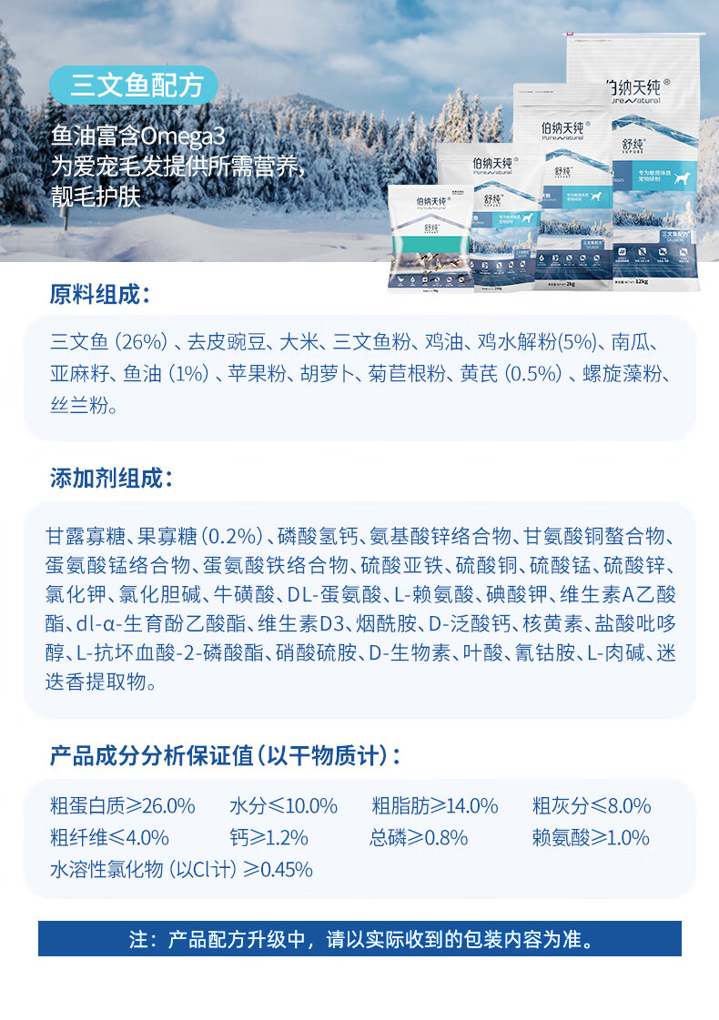 伯纳天纯烘焙美毛狗粮鲜肉美毛犬粮鸭肉梨2kg/4斤