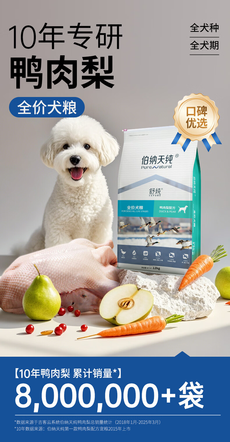 伯纳天纯舒纯鸭肉梨低敏成犬幼犬狗粮12kg/24斤