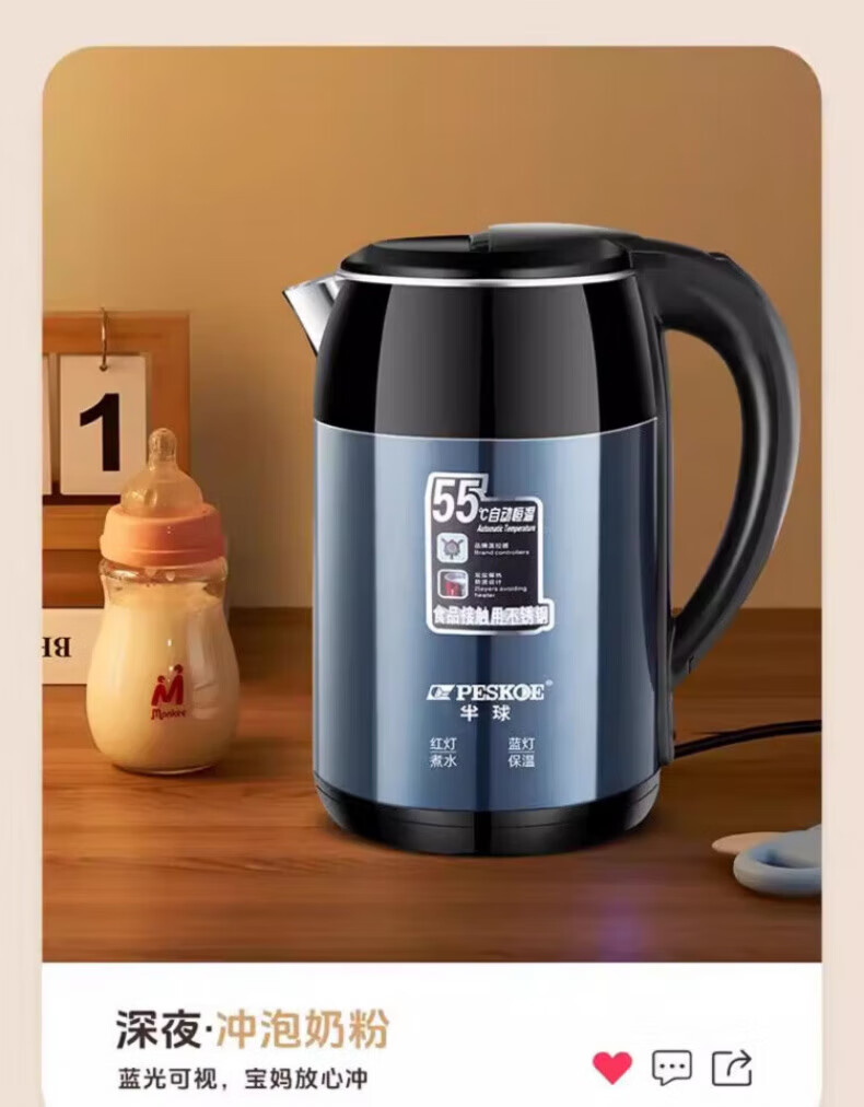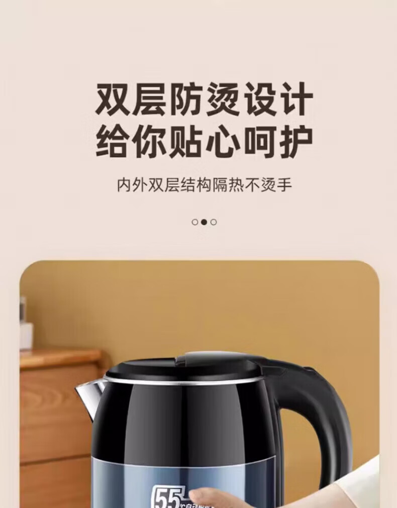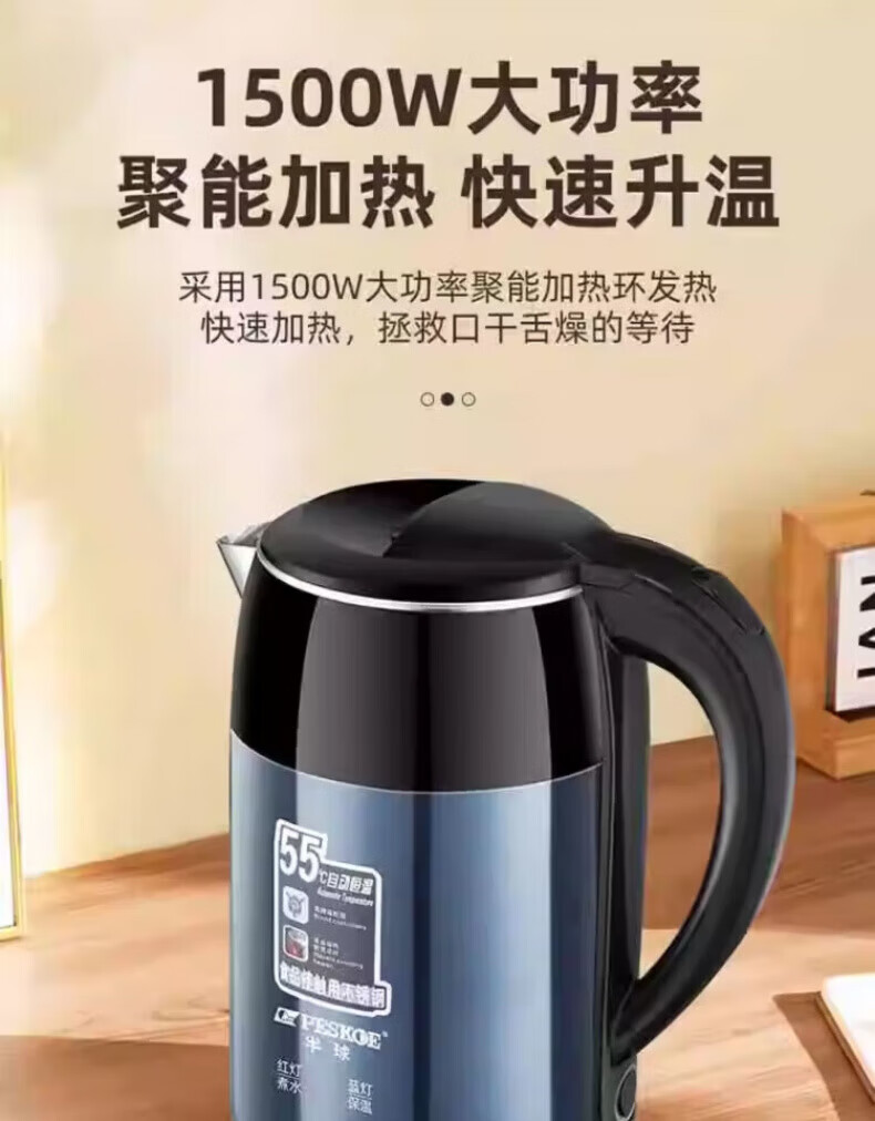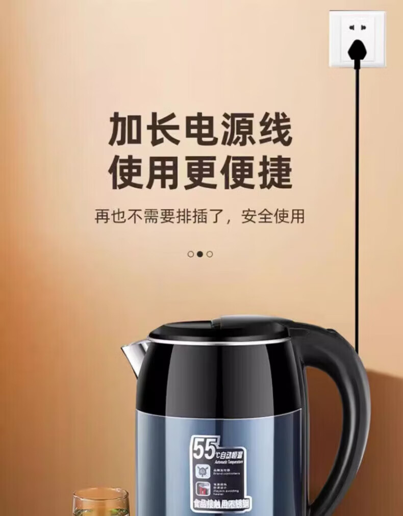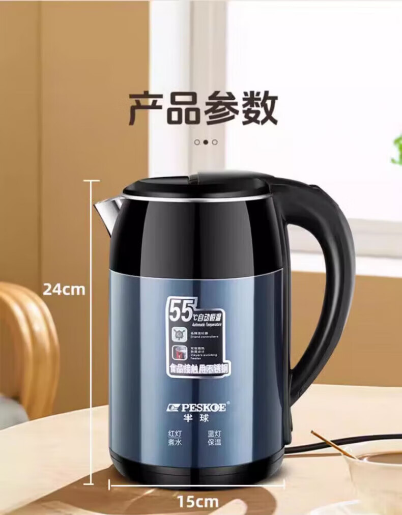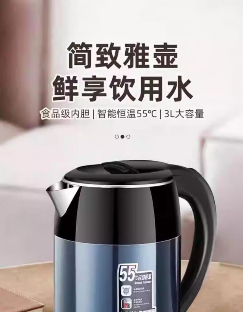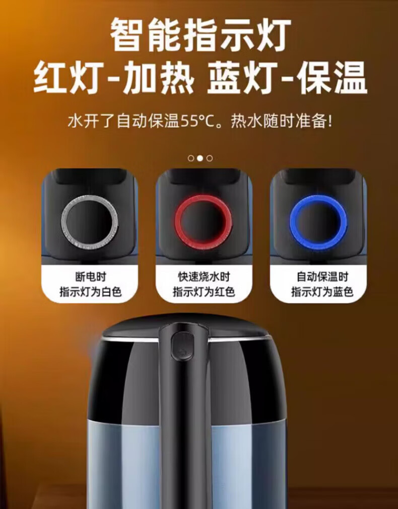 DEATKN大功率快速烧水壶保温一体食品级不锈钢暖水壶家用保温壶自动 3L 星空蓝[自动断电]