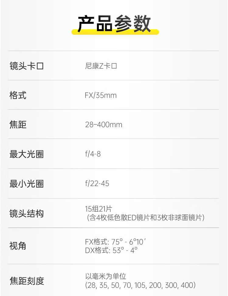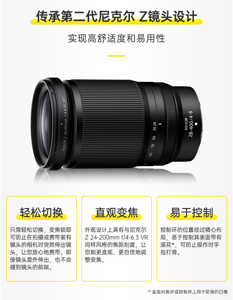 尼康(Nikon)尼克尔 Z28-400 mm f/4-8 VR 全画幅 远摄长焦高倍变焦 运动 动物 美食 轻质便携微单镜头 Z 28-400mm f/4-8 VR 标配