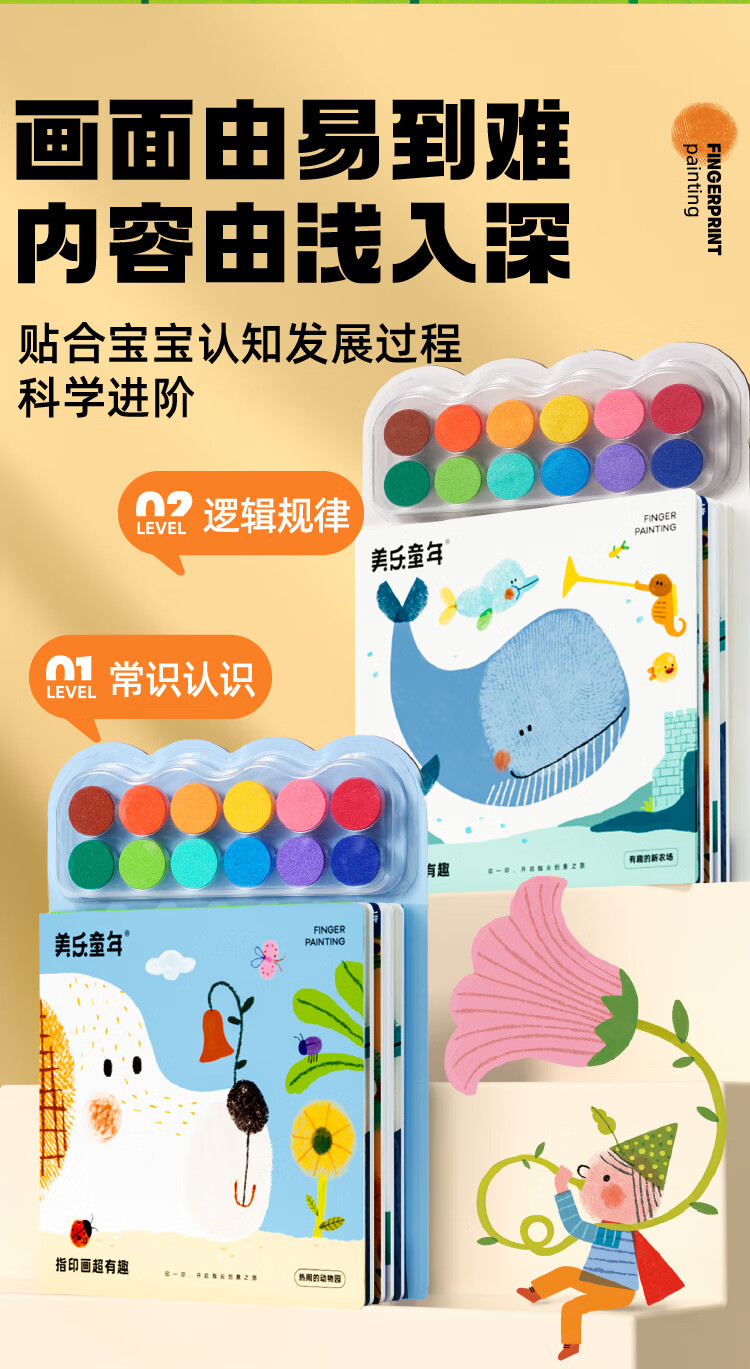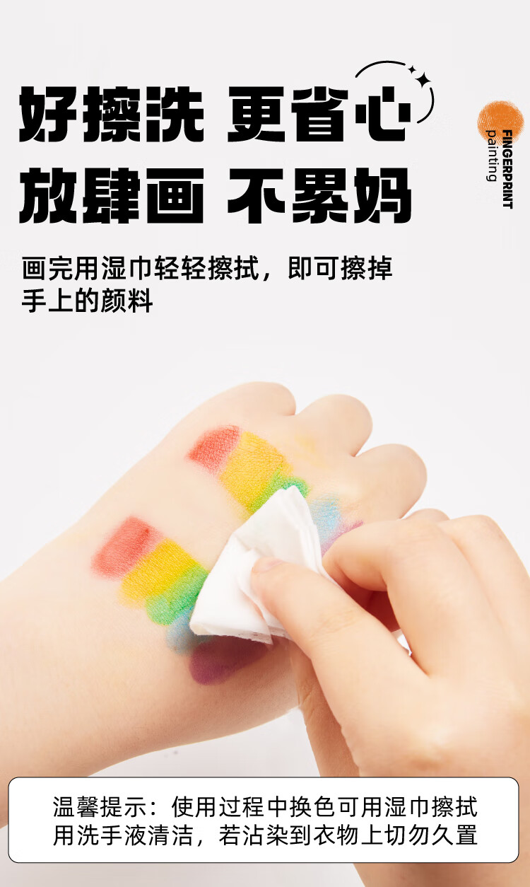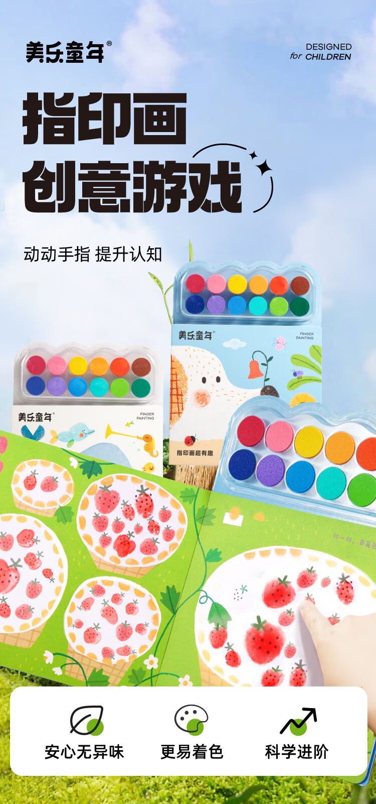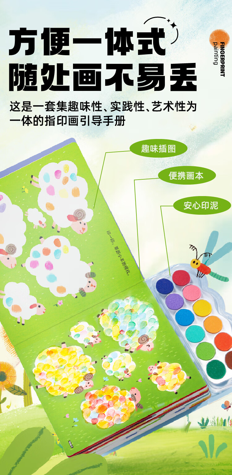 美乐童年便携指印画儿童手指画颜料男孩女孩1-3岁可水洗玩具生日礼物