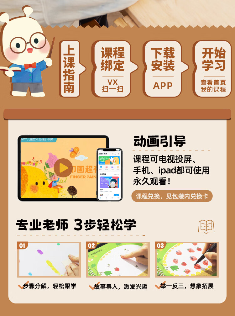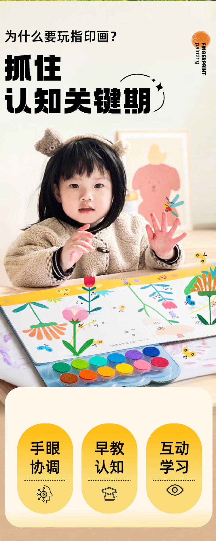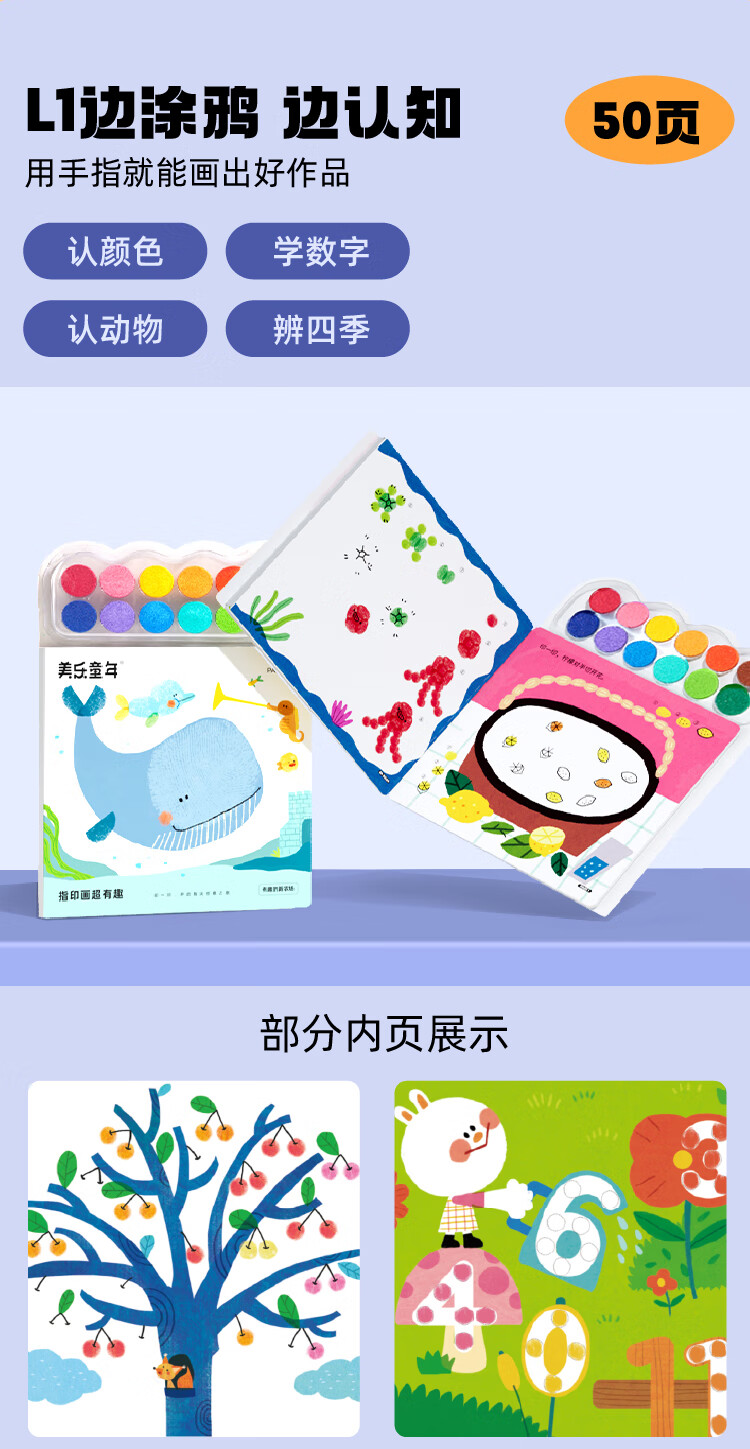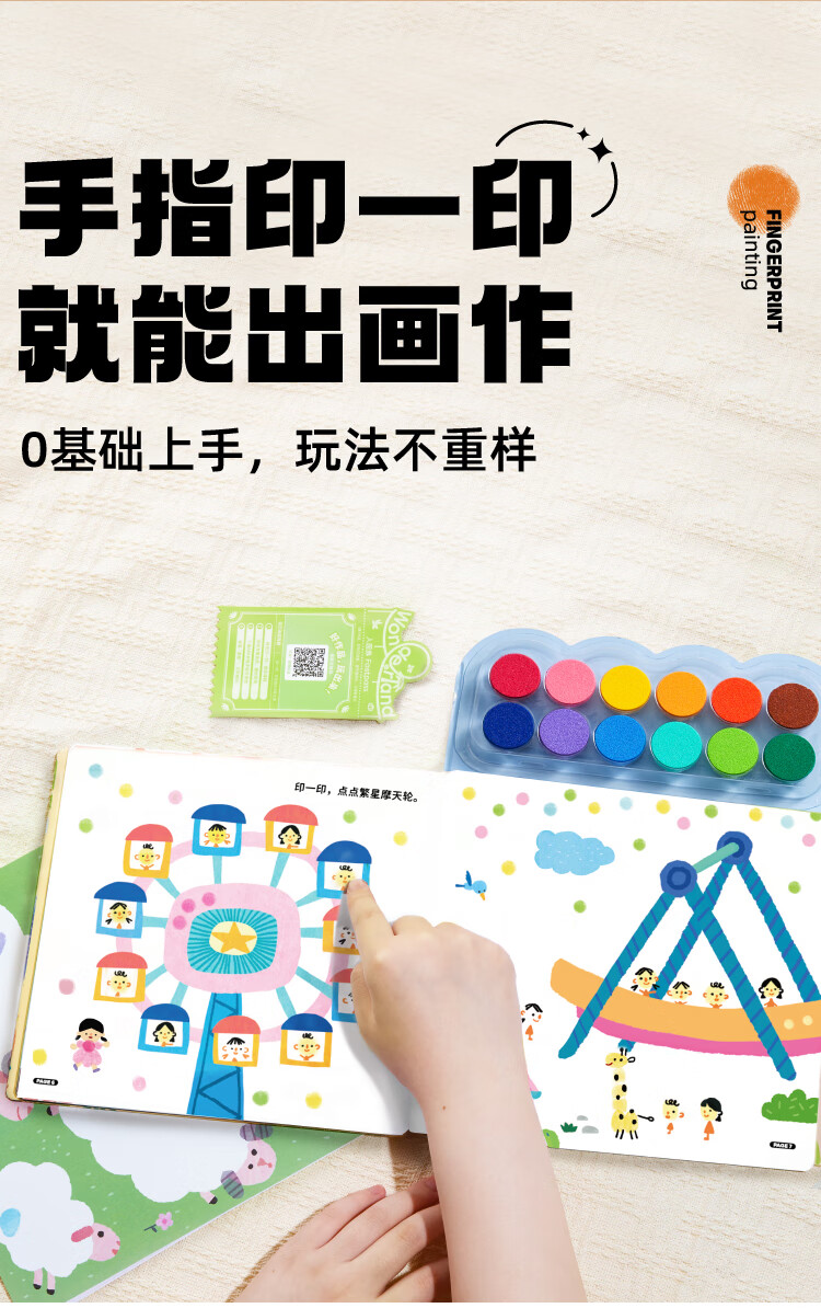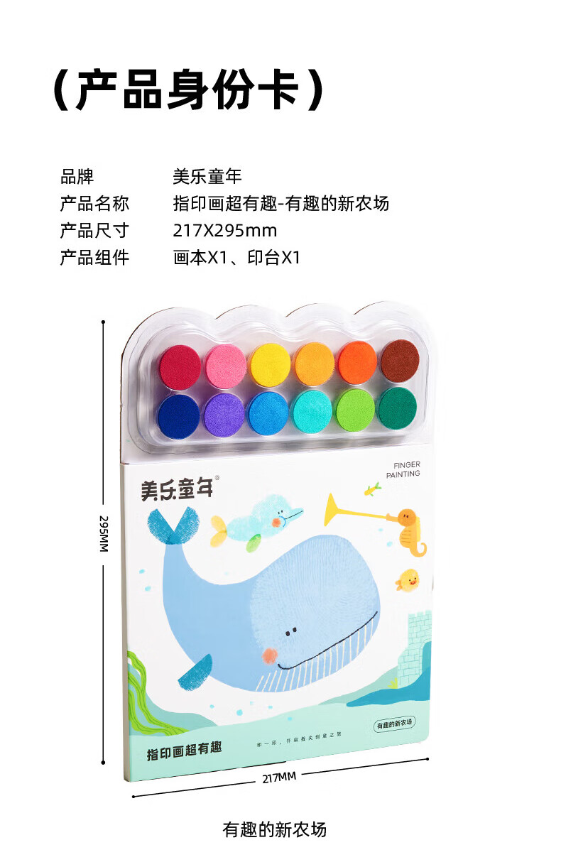 美乐童年便携指印画儿童手指画颜料男孩女孩1-3岁可水洗玩具生日礼物