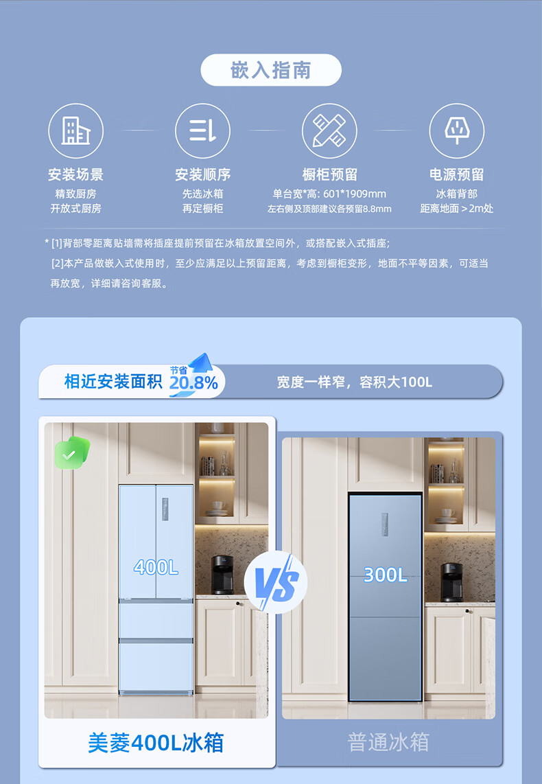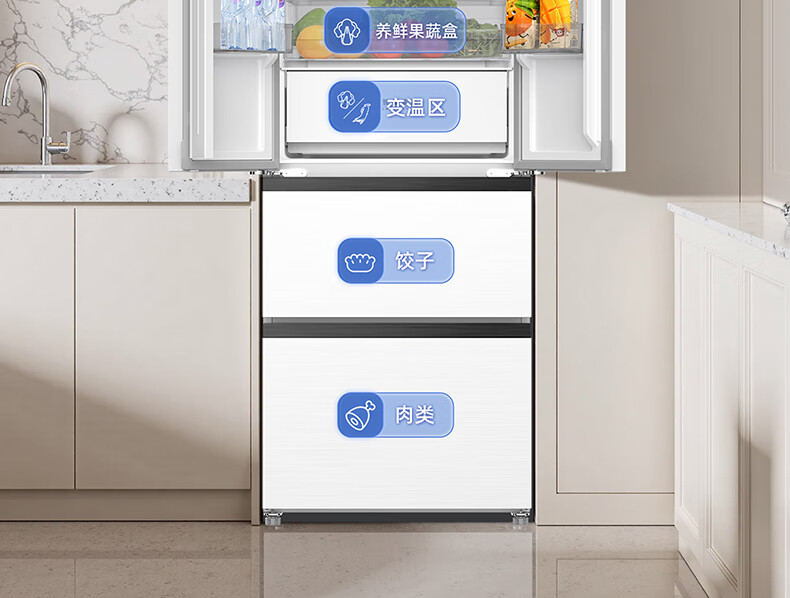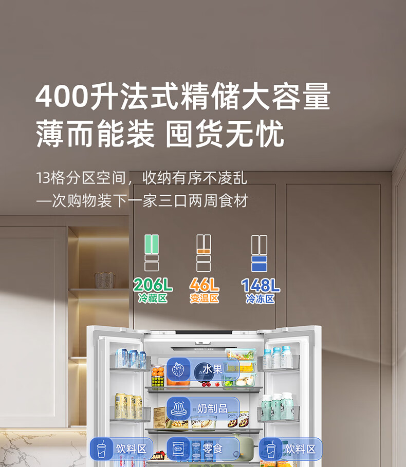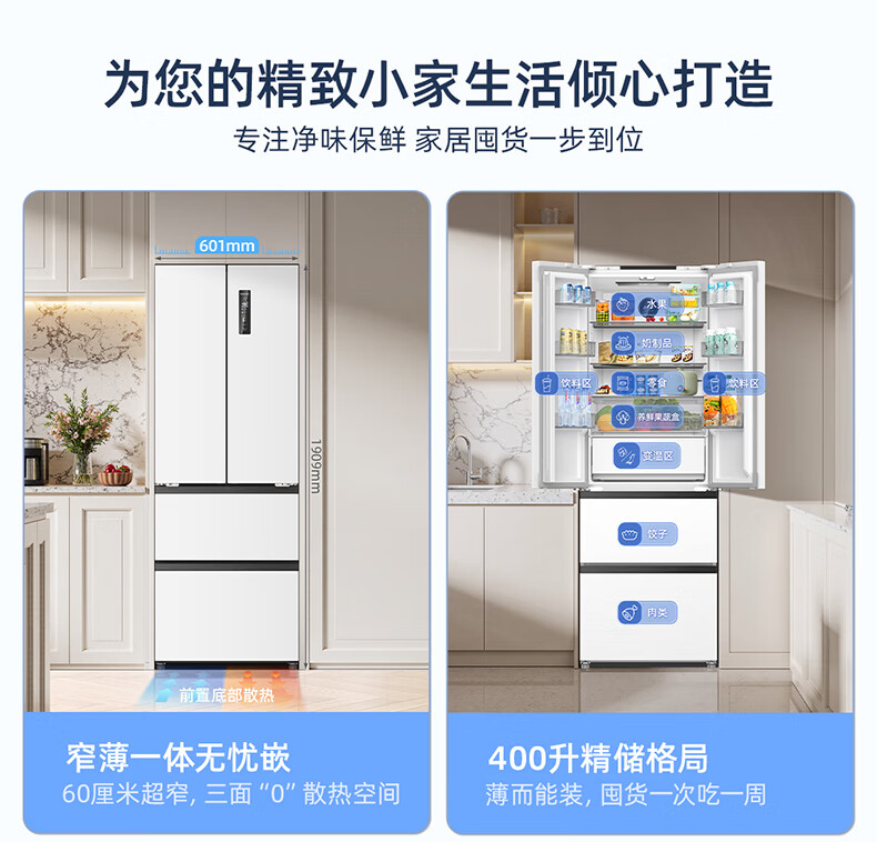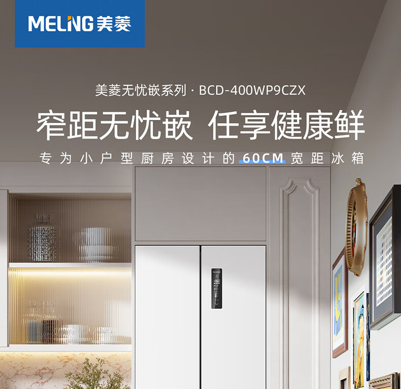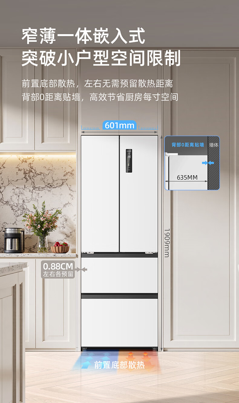 美菱(MeiLing)无忧嵌400升法式多门冰箱小户型家用底部散热超薄窄门嵌入式一级变频国家补贴BCD-400WP9CZX雪域白
