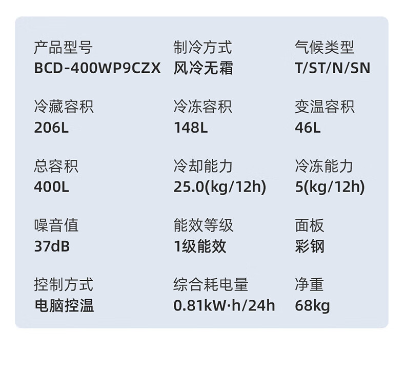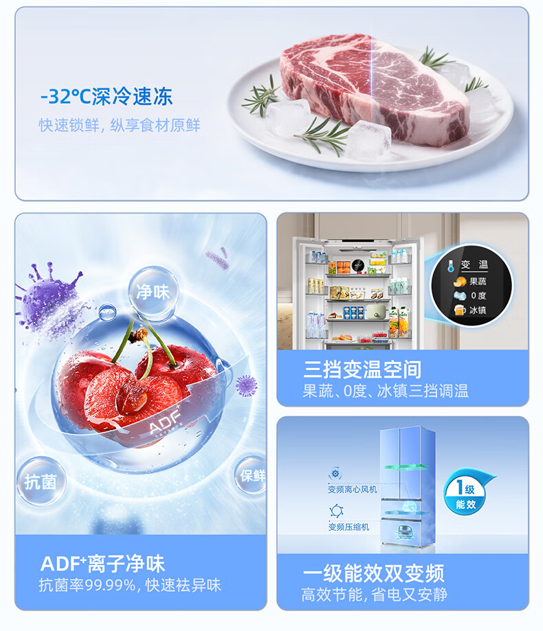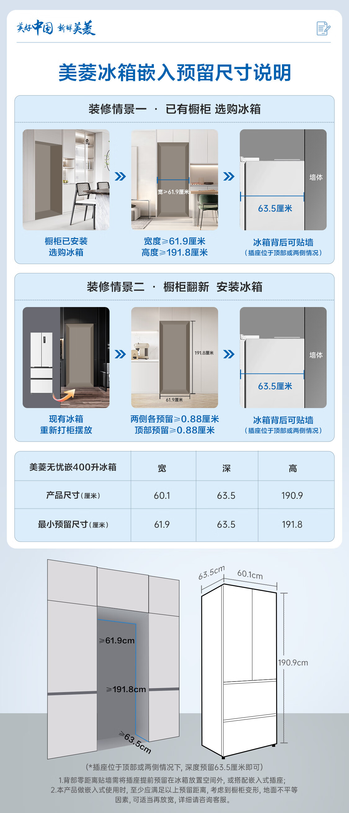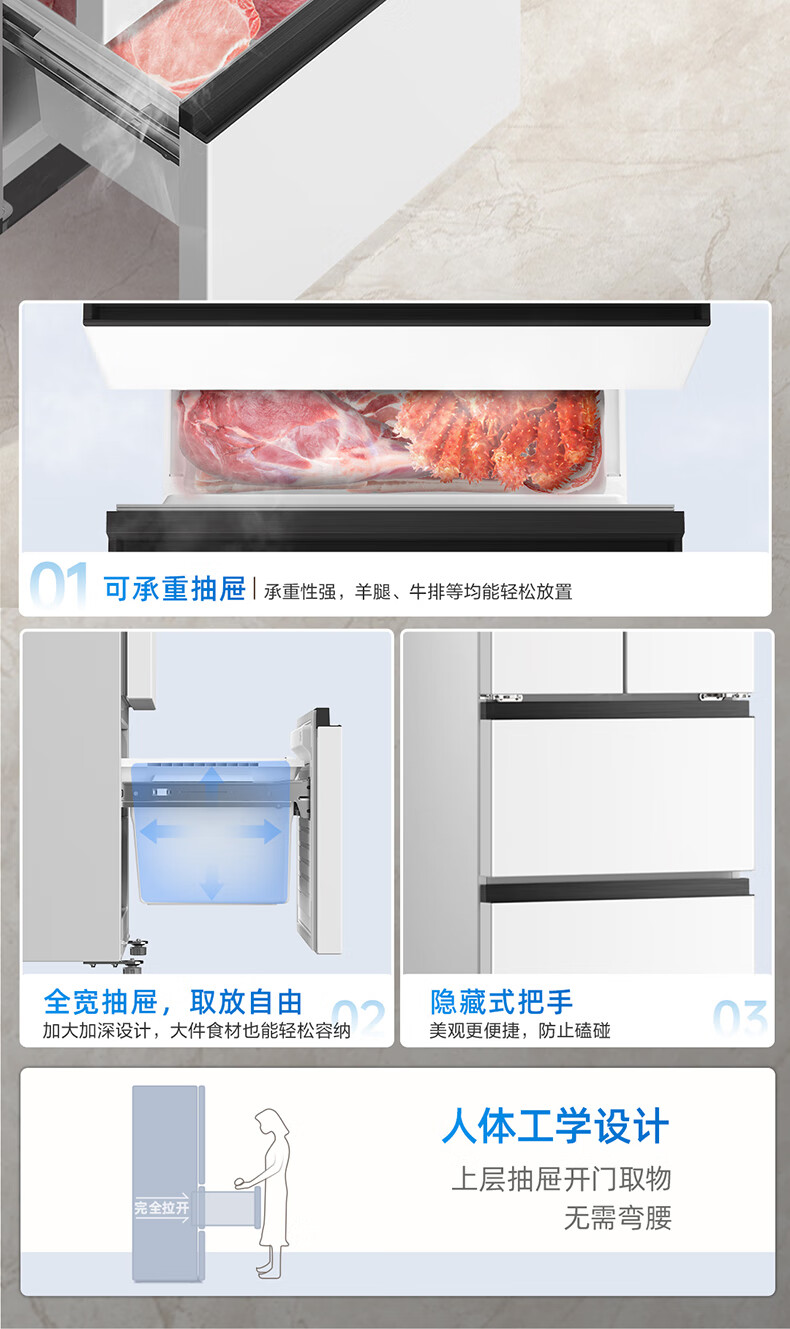 美菱(MeiLing)无忧嵌400升法式多门冰箱小户型家用底部散热超薄窄门嵌入式一级变频国家补贴BCD-400WP9CZX雪域白