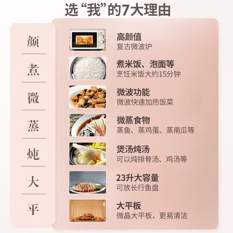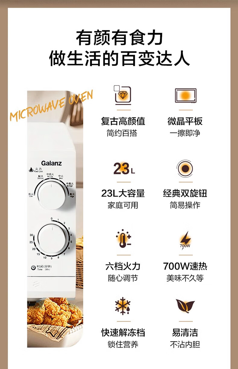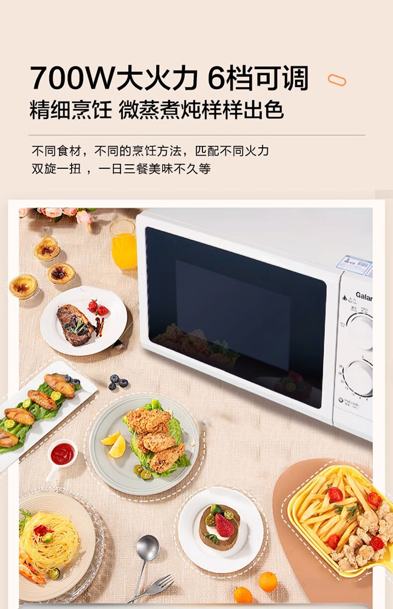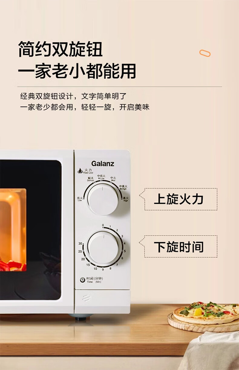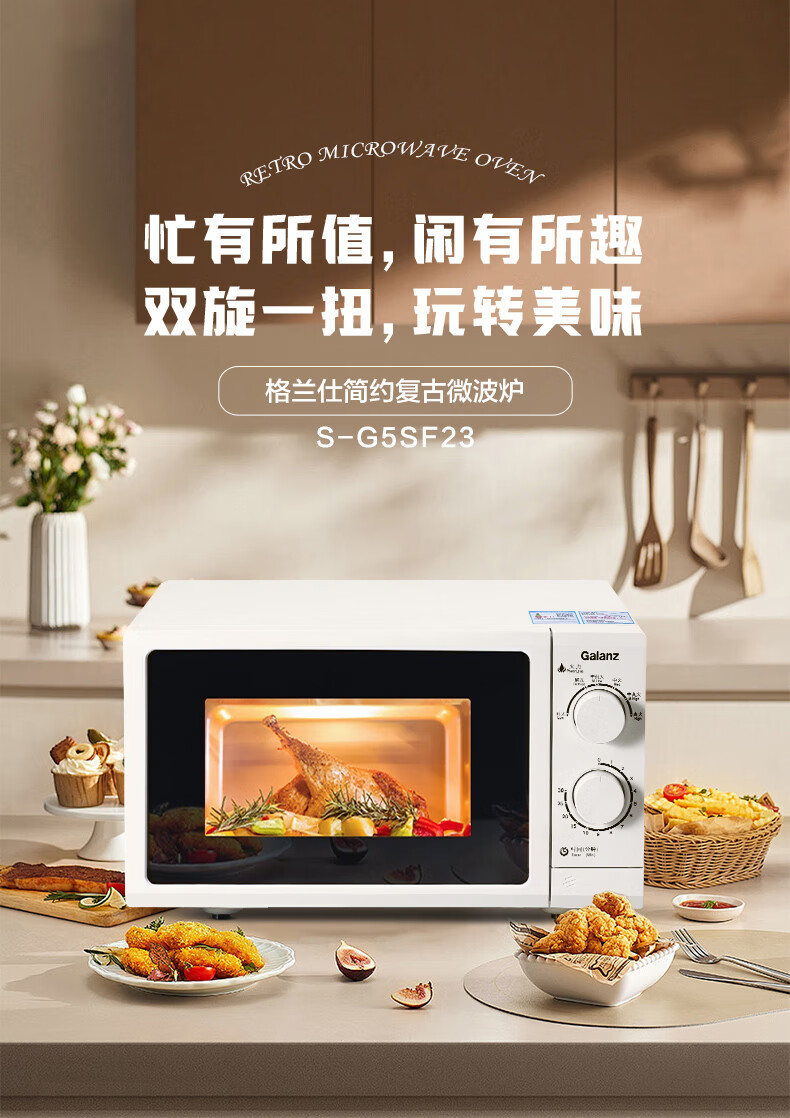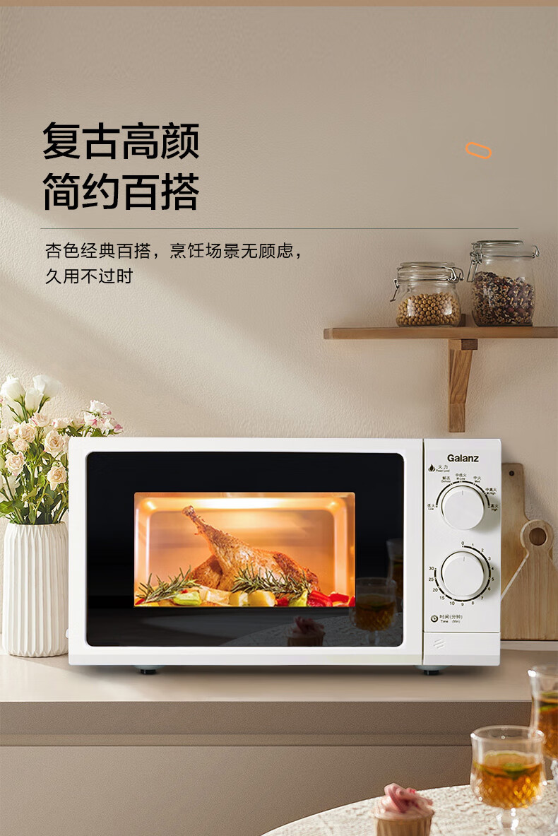 格兰仕【国家补贴】微波炉家用23升大容量平板易清洁机械旋钮式便捷操作简单精准控温复古高颜值奶油风G5 升级23升大容量 家庭优选