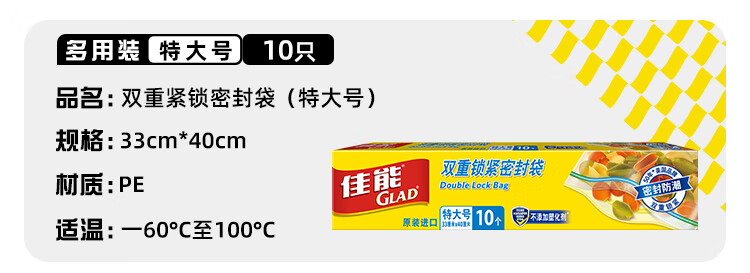 佳能(Glad)食品级密封袋特大号10个 自封密封袋 用途分装袋收纳袋 HP638C