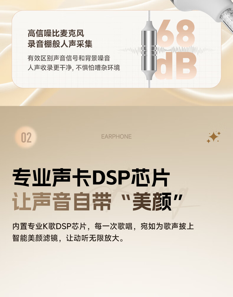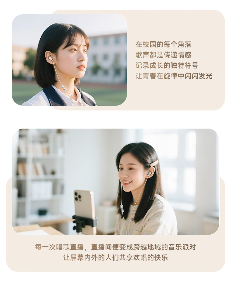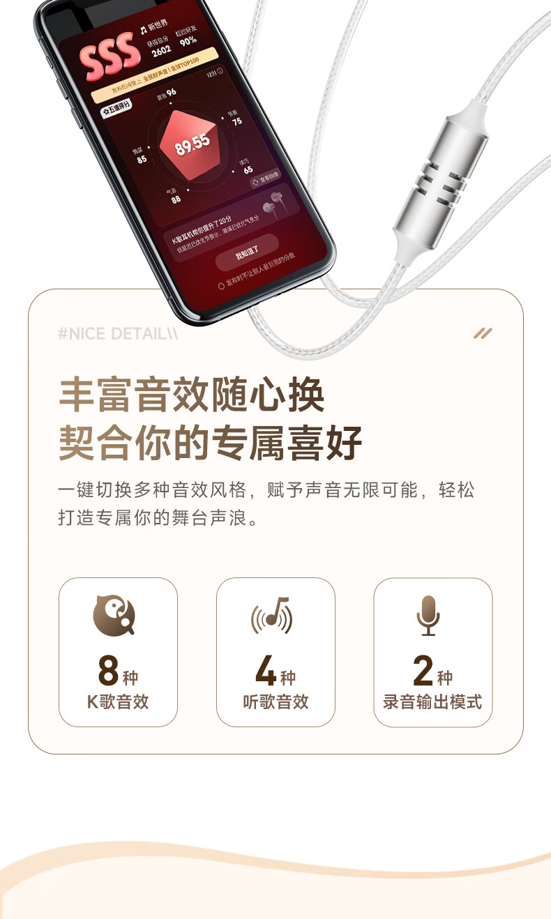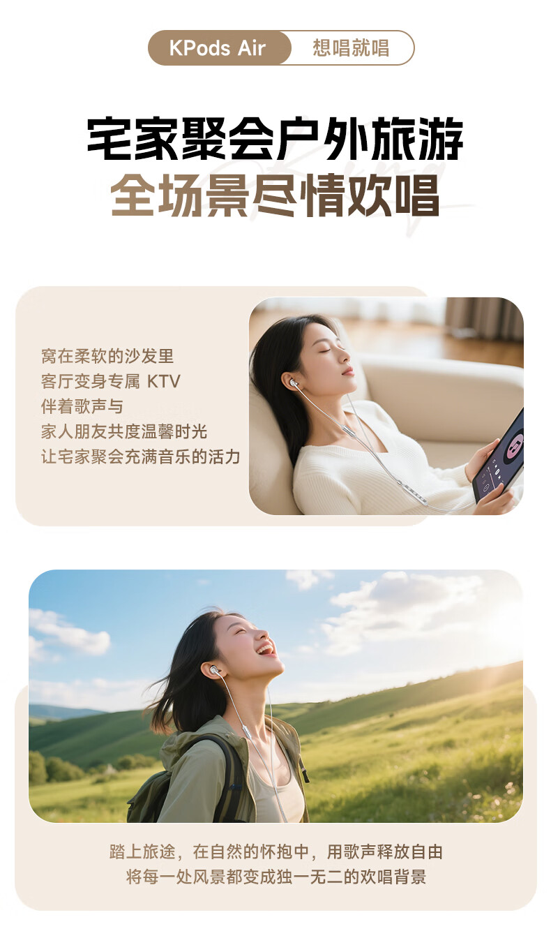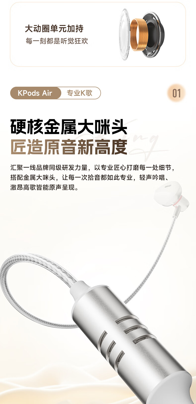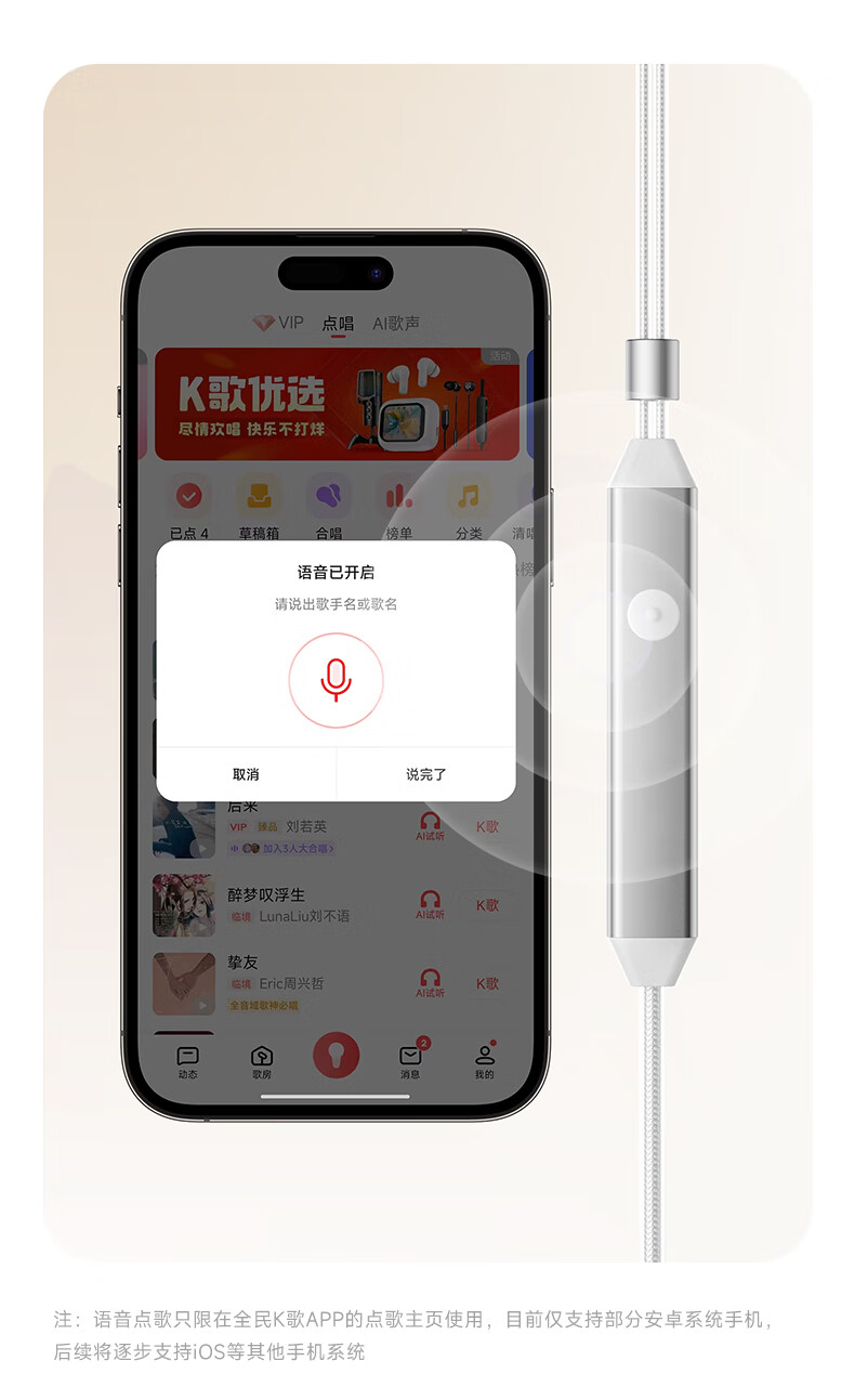全民K歌腾讯音乐联合定制电脑声卡音箱线控K歌耳机麦克风自带耳返打分直播唱歌录音KPods Air白色