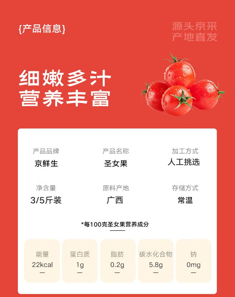 京鲜生 广西红色圣女果净重3斤 小番茄西红柿新鲜水果蔬菜源头直发